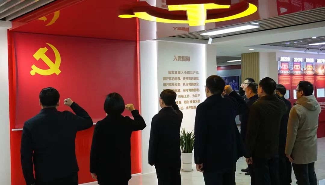站在党旗面前,党委成员高举右手,庄严地重温入党誓词:“我志愿加入中国共产党……随时准备为党和人民牺牲一切,永不叛党。”铮铮誓言表达着对党的无限忠诚和坚定信念,激励着每一位党员时刻牢记自己的初心和使命。