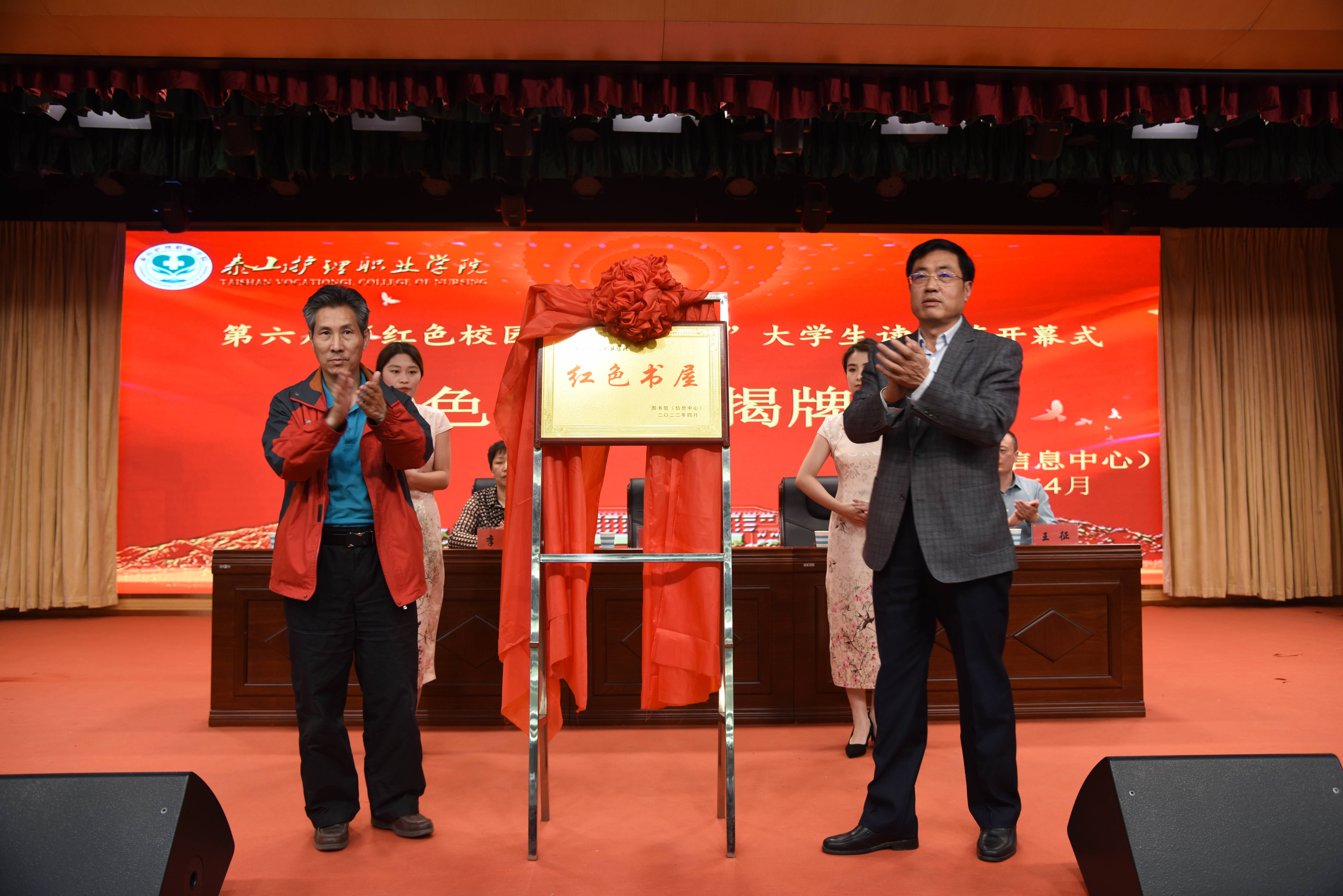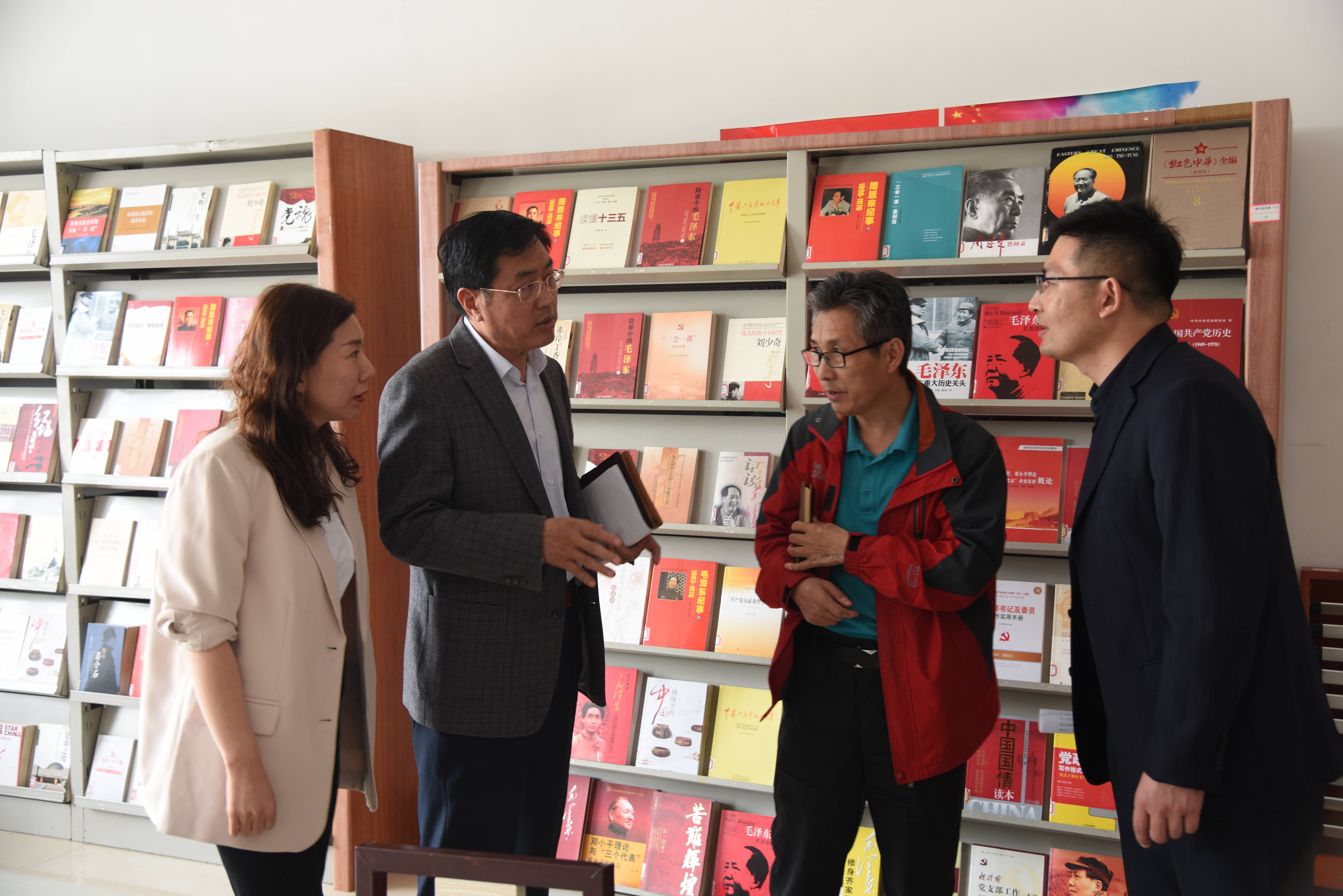 开幕式最后,由张宗起与孙洪田为学院图书馆“红色书屋”揭牌。学院领导与参会人员到图信楼一楼参观“红色书屋”,并对书屋建设做出指导。