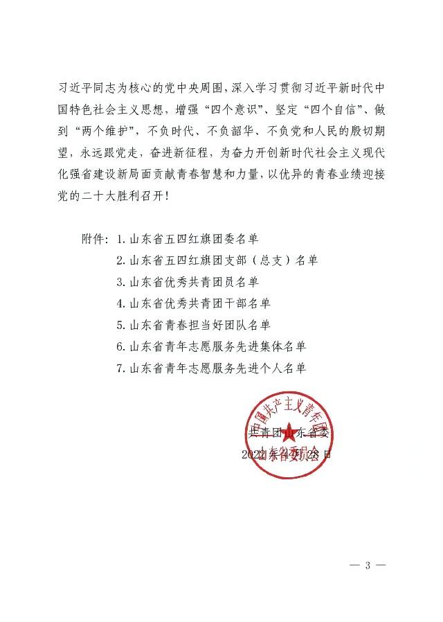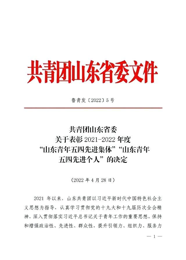 近日,共青团山东省委下发通知,表彰了2021-2022年度“山东青年五四先进集体”和“山东青年五四先进个人”,新葡萄“新葡萄8883官网AMG青年志愿服务队”和健康与管理系2020级学生唐晶分别获得“山东省青年志愿服务先进集体”和“山东省优秀共青团员”的荣誉称号。