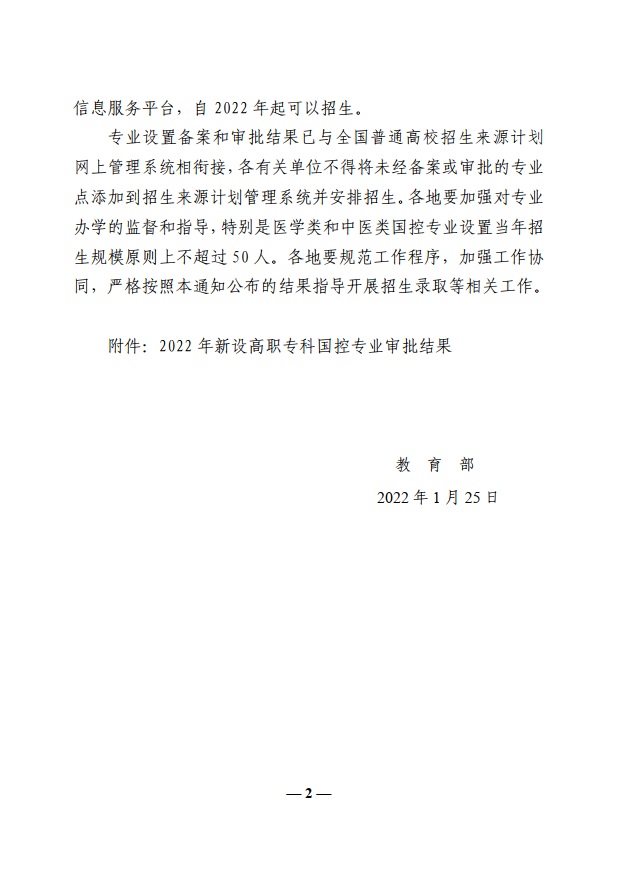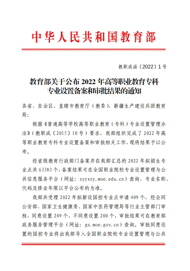 根据《教育部关于公布 2022 年高等职业教育专科专业设置备案和审批结果的通知》(教职成函〔2022〕1号)文件,新葡萄8883官网AMG申报的预防医学专业获教育部审批通过,自2022年起正式招生,修业年限3年,毕业生可参加公共卫生执业助理医师考试。