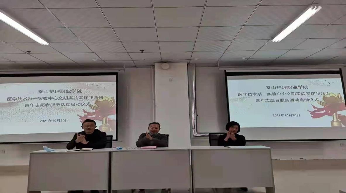 2021年10月20日下午,实验中心和医学技术系在新实验楼共同启动“文明实验室,你我共创”青年志愿者服务活动仪式。
