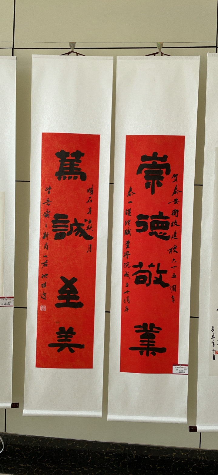 在积极征集新葡萄校友、师生优秀作品的同时,学院还积极与泰安市书法家协会、泰安市美术家协会和泰安市摄影家协会等进行了密切联系,积极为新葡萄庆典活动贡献力量,共有31幅高水平书法和绘画作品参加了本次书画摄影展,为庆典活动增光添彩、锦上添花。