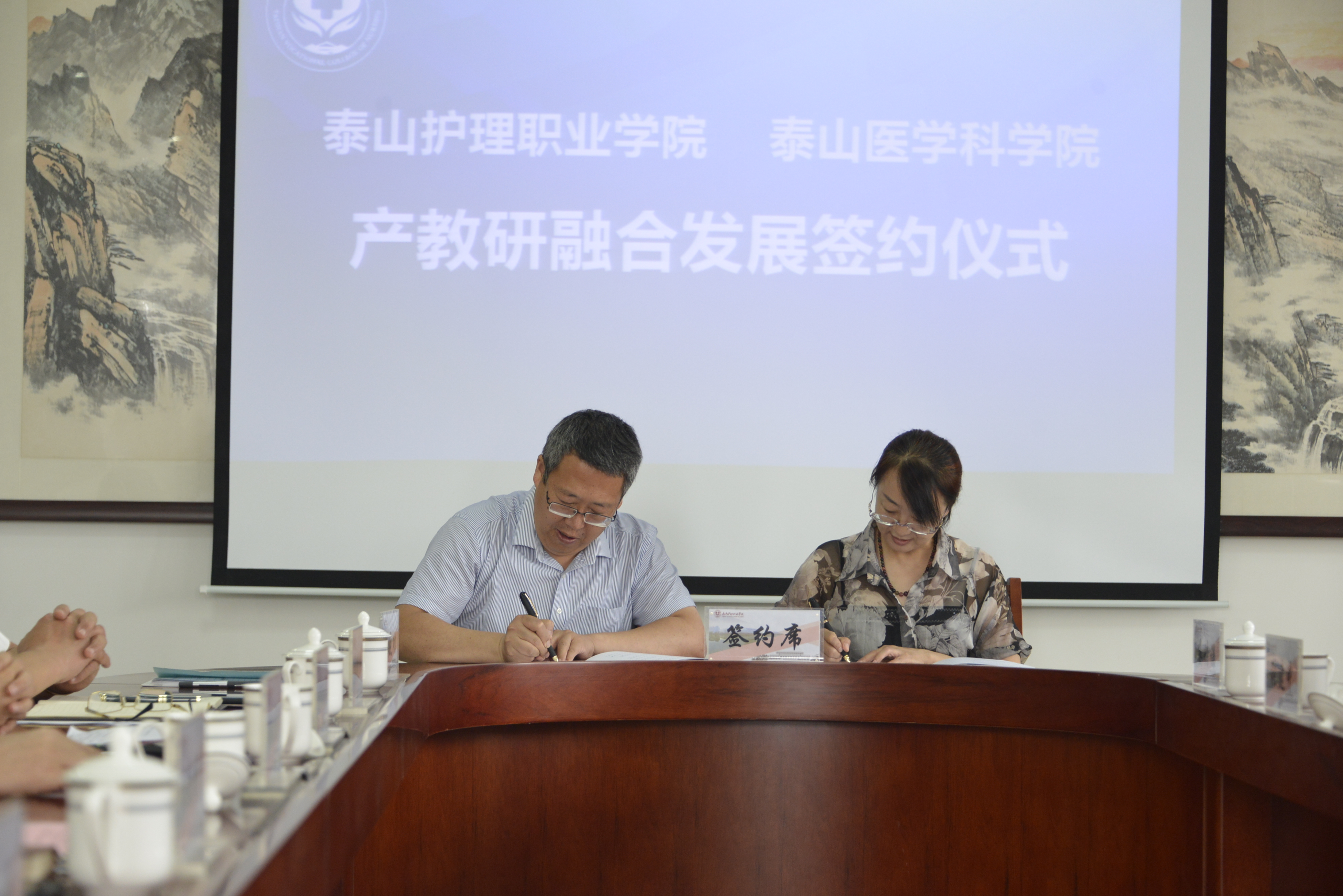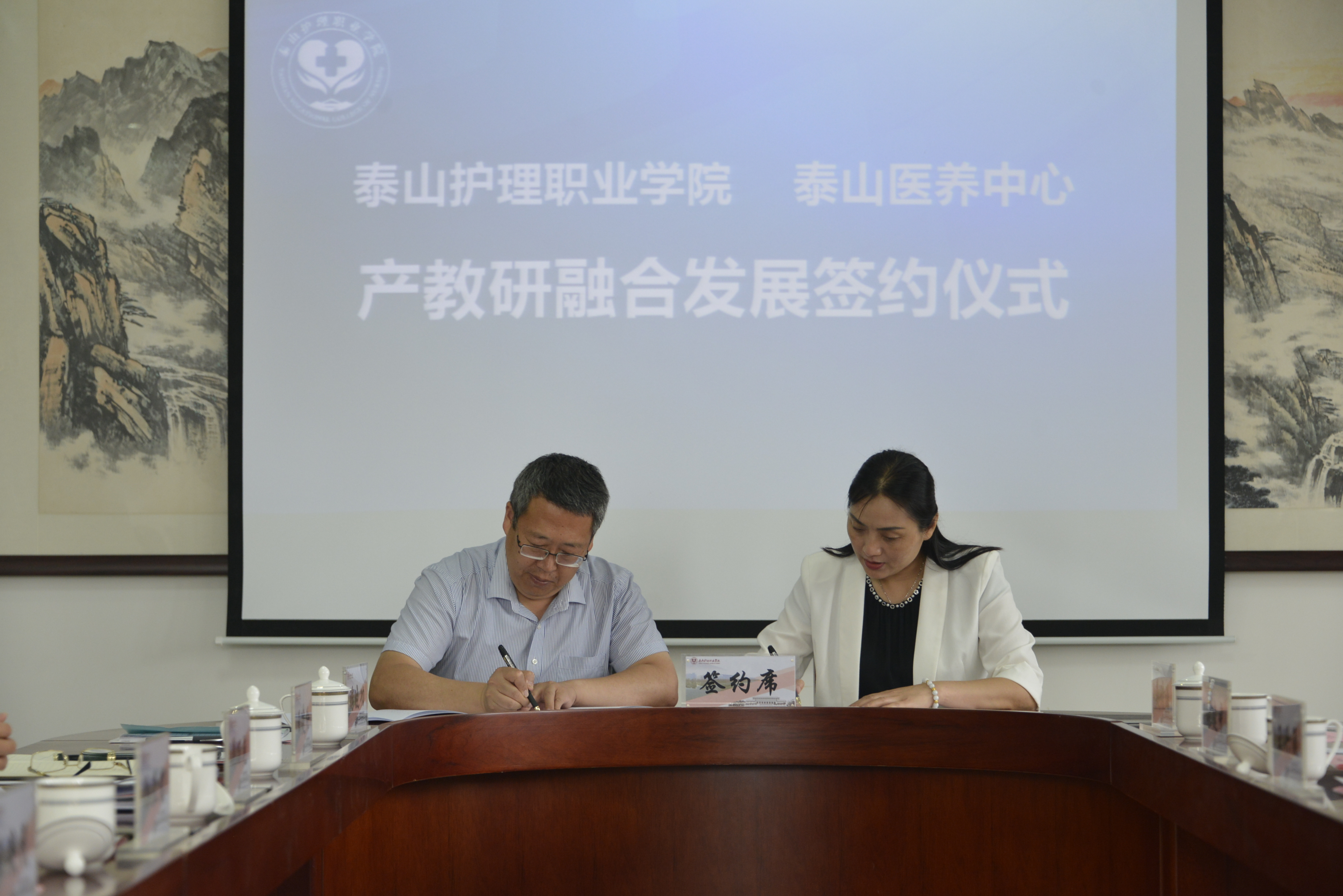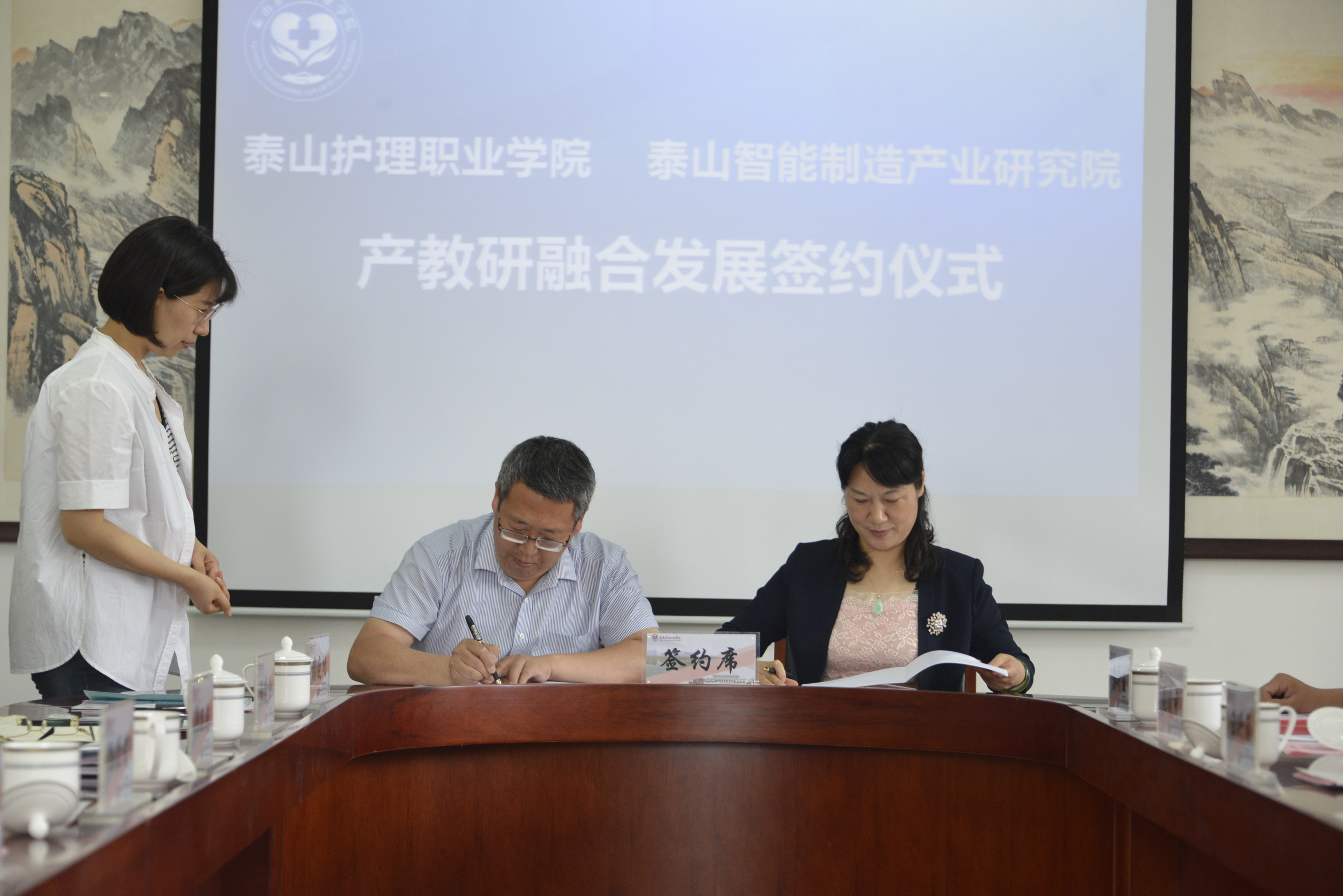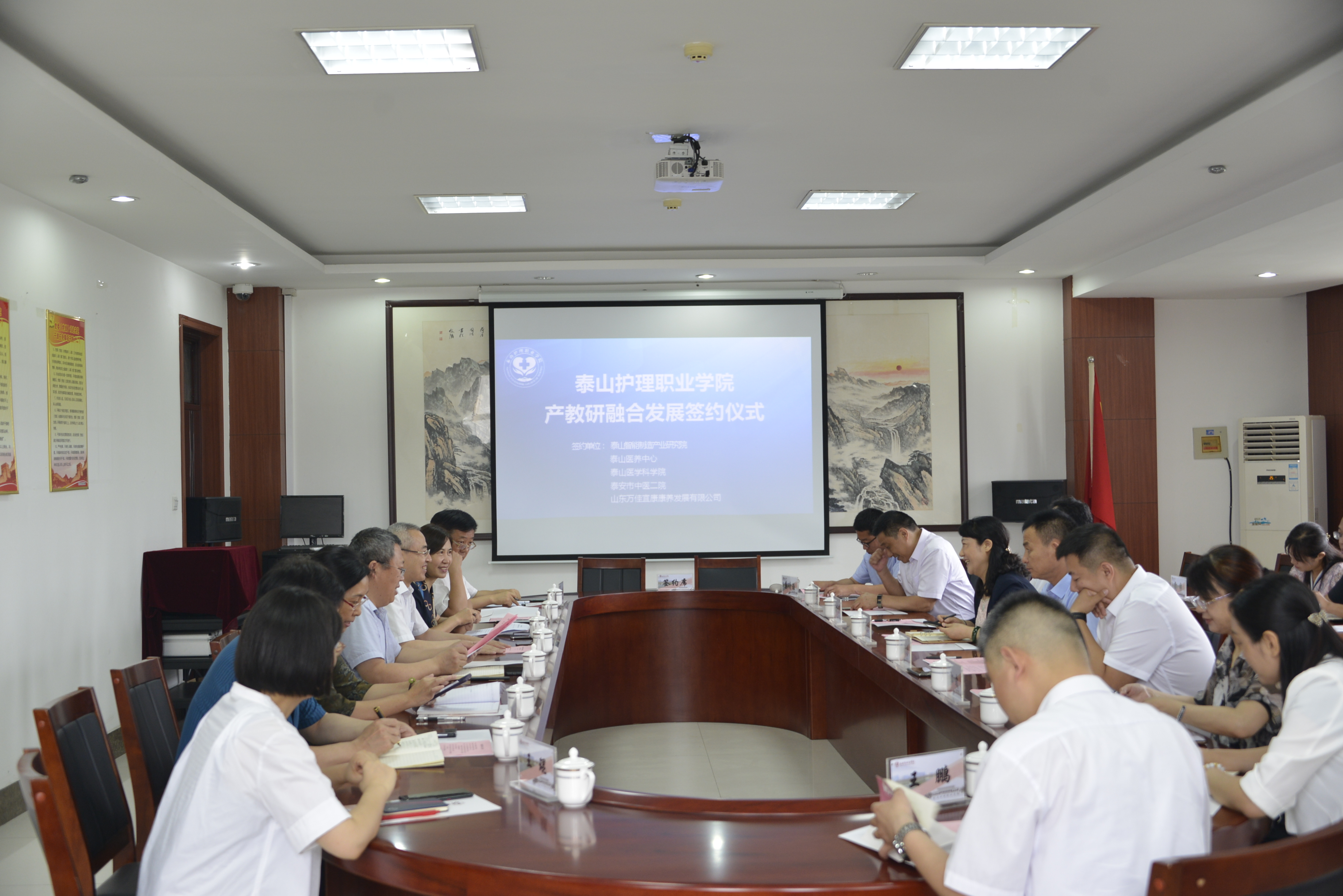 7月7日上午,学院与泰山智能制造产业研究院、泰山医学科学院、泰山医养中心、泰安市中医二院、山东万佳宜康康养发展有限公司教产研战略合作签约仪式在学院办公楼四楼会议室举行。