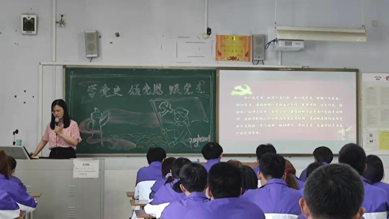课上班级党员导师张国霞带领同学们回顾了中国共产党从诞生起领导中国人民进行革命、建设和改革的艰辛历程和实现中华民族从站起来到富起来到强起来的伟大飞跃,着重强调了长征精神、抗战精神、沂蒙精神、西柏坡精神等党的伟大红色精神,并指导广大学生认识党史教育活动的重大意义,更好地开展好党史学习,坚定理想信念,争做新时代有为青年。