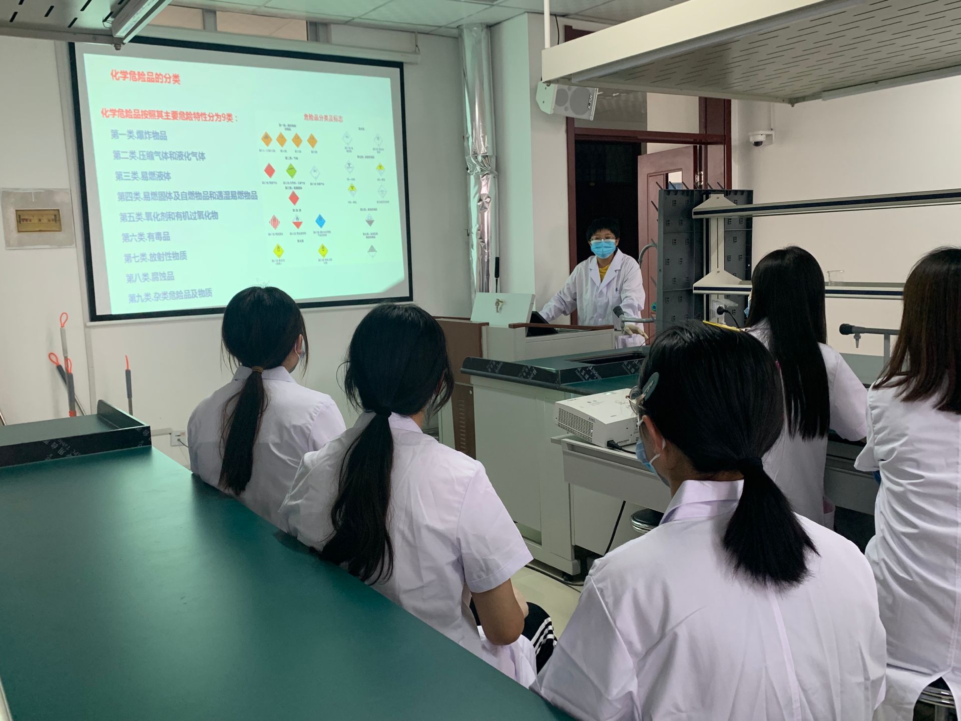 演习模拟内容为盐酸泄露的应急处理。演练前,由药学检验系教学科副科长宋立群和孔贞贞老师对参加演习的师生进行强酸泄露应急处理的培训。现场师生模拟实验室突发盐酸倾倒事件,针对突发情况,工作人员立即按照应急方案分工,迅速启动应急预案。现场工作人员配合密切,组织学生有序撤离,现场封锁,事故现场危害评估,专业人员对泄露现场做出科学无害化处理。