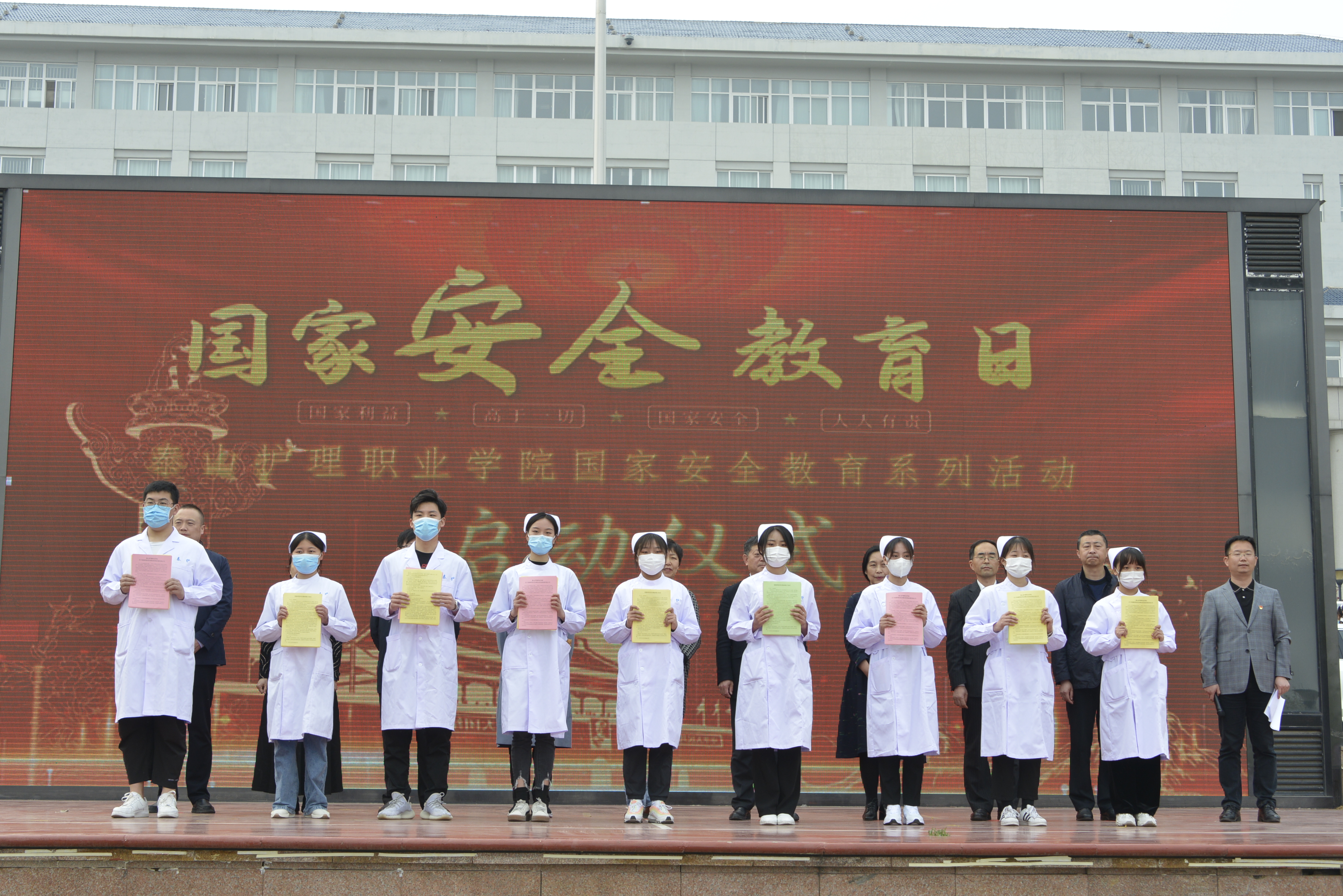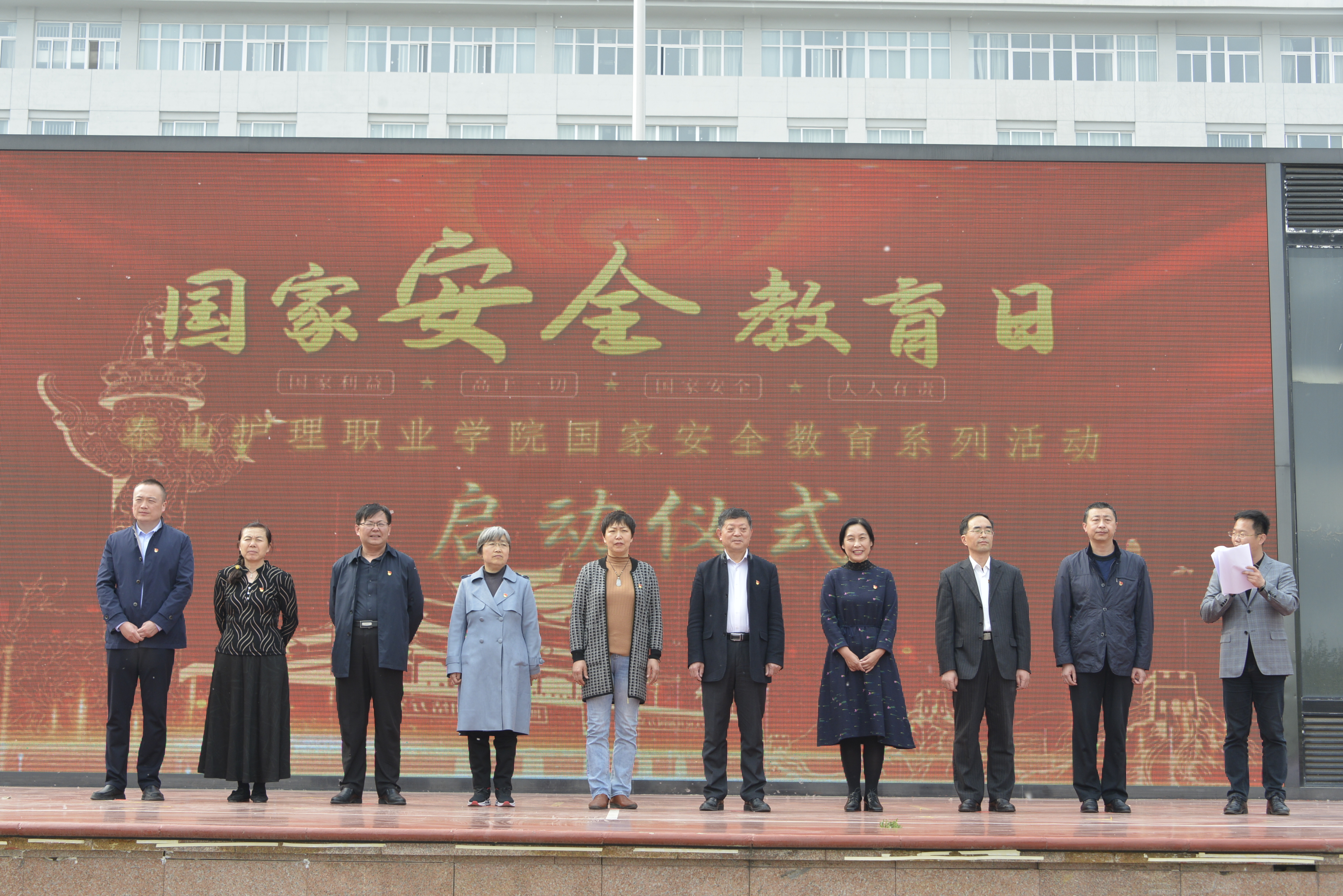 4月15日15时,学院在LED广场上举办国家安全教育日系列活动启动仪式,党委委员、机关党委专职副书记李波,党委委员、组织人事处处长高纪河,学工处、保卫处、教务处、招就办、实验中心、科研处、工会主要负责人以及部分师生代表共500余人参加活动。仪式上,教师、学生代表整齐列队,认真观看了泰安市国安委制作的国家安全教育视频。随后,教师代表、学生代表做出承诺发言,并在“维护国家安全从我做起”横幅前承诺签字,表明学院师生维护国家安全的决心和态度。院领导向学生颁发了国家安全教育资料,并为国家安全教育宣传队授旗。