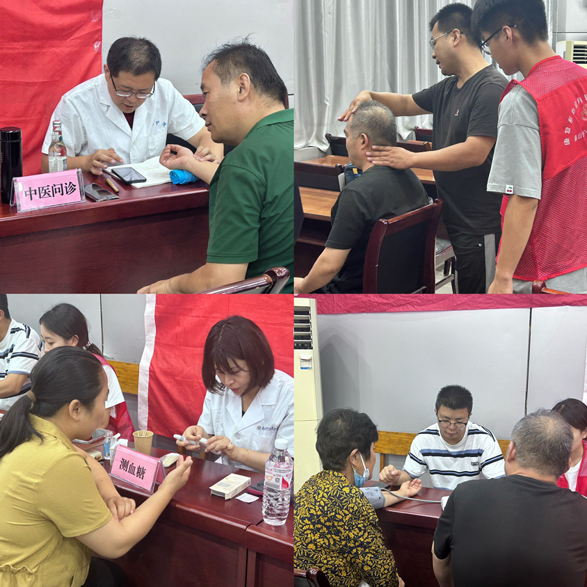 在潮泉分会场,前来就诊的村民络绎不绝。董建栋老师端坐在一张桌子旁,运用自己多年积累的中医经验,为每一位村民细心把脉,分析病情,提出合理的治疗建议。在他的周围,一群身穿统一服装的志愿者们正忙碌而有序地工作着,他们正在量血压,测血糖,运用所学的中医推拿手法,轻轻按压村民们的穴位,疏通经络,缓解疲劳。会场氛围温馨和谐,就诊的村民们脸上洋溢着笑容。