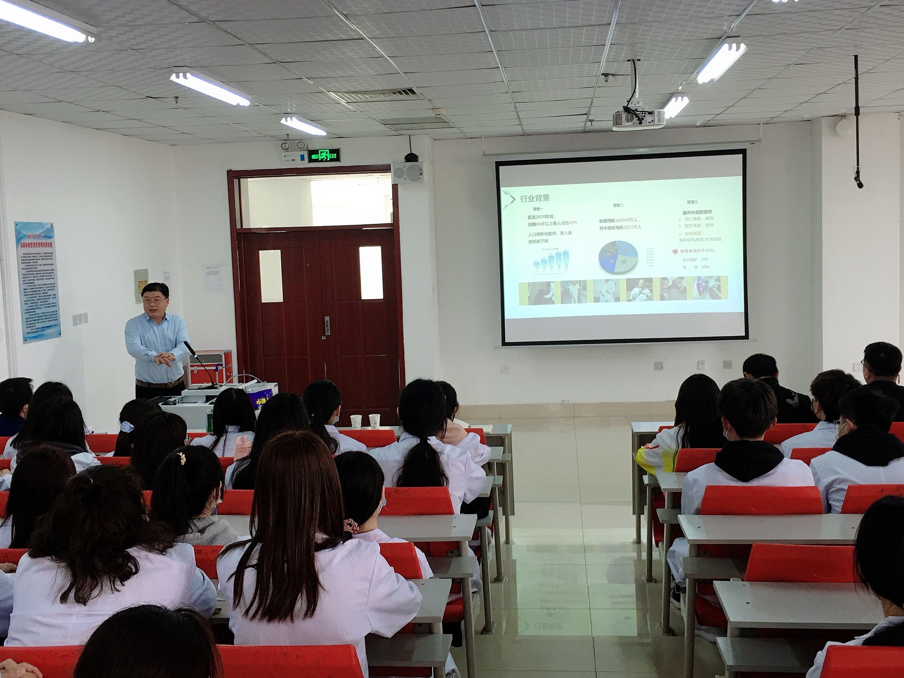 安德成对智慧医养健康产业发展和人才需求做了学术报告,对海天智能订单班相关情况做了介绍;贾文斌结合自己在海天智能公司的实习经历与收获,讲述了专业实践学习的重要性,同时表达了对学校教育培养的感激之情。本次学术报告会使学生了解了更多行业发展的信息,增长了见识,开拓了视野,拓宽了就业思路。会后,安德成一行人员与康复教研室老师进行了深入洽谈,研究了订单班和申报合作办学的相关具体事宜。