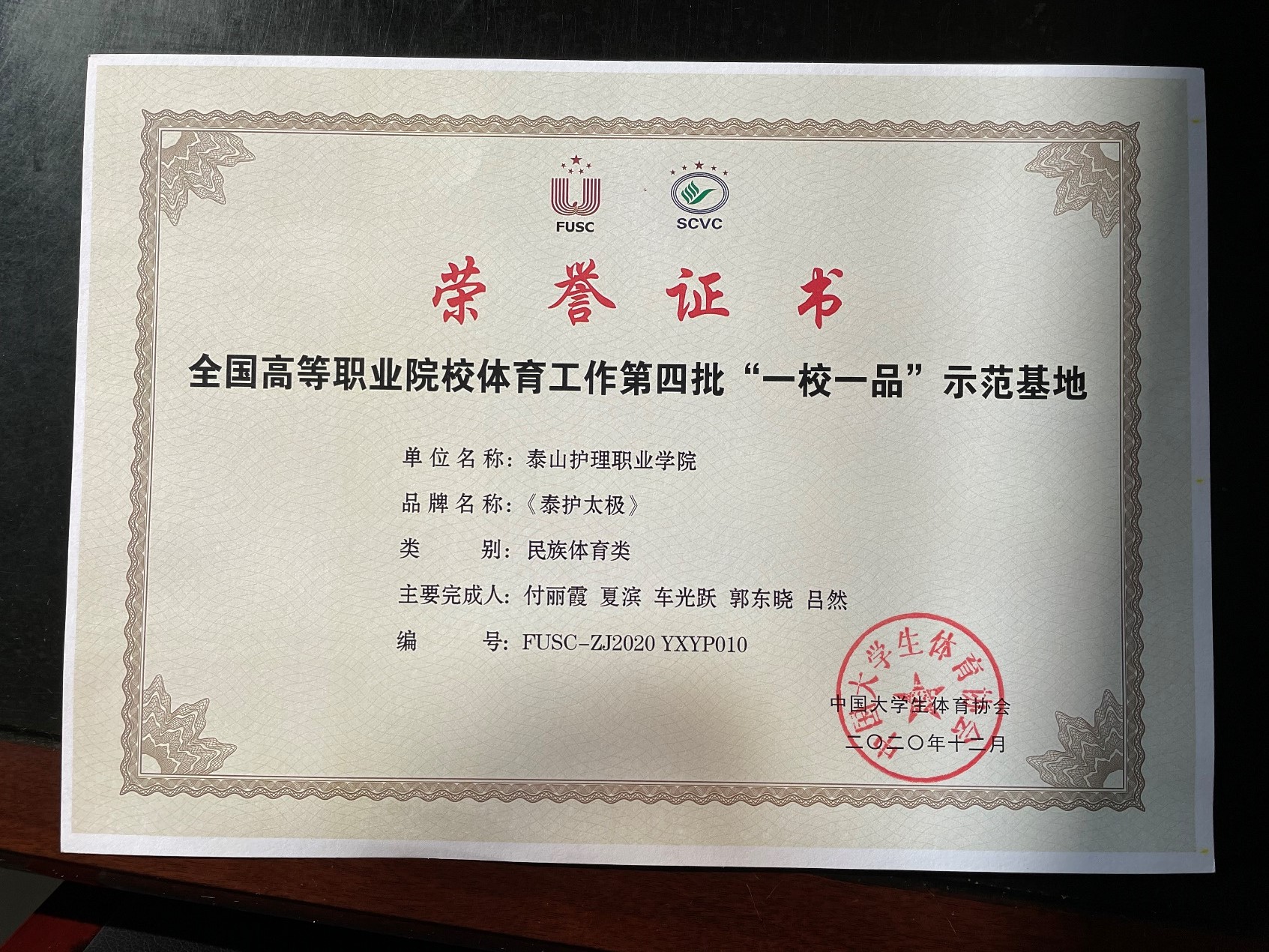 近日,新葡萄申报的民族体育类项目“泰护太极”被全国高等学校体育教学指导委员会及中国大学生体育协会职业教育学校体育工作委员会授予全国高等职业院校体育工作第四批“一校一品”示范基地。