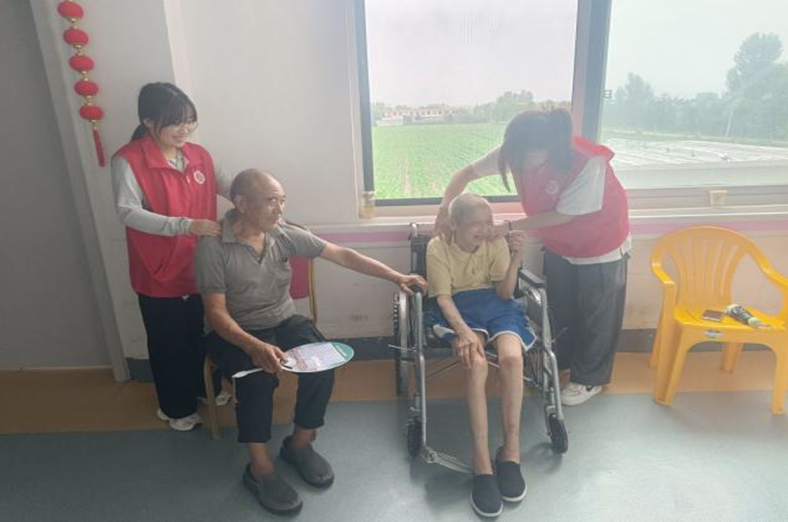 在圣康养老院,志愿服务队针对老年人常见的防跌倒、预防阿尔兹海默症等问题做了专题讲座,并通过文艺演出与专业的推拿按摩服务,为老人们送去了欢笑与舒适,弘扬了尊老敬老的社会风尚。