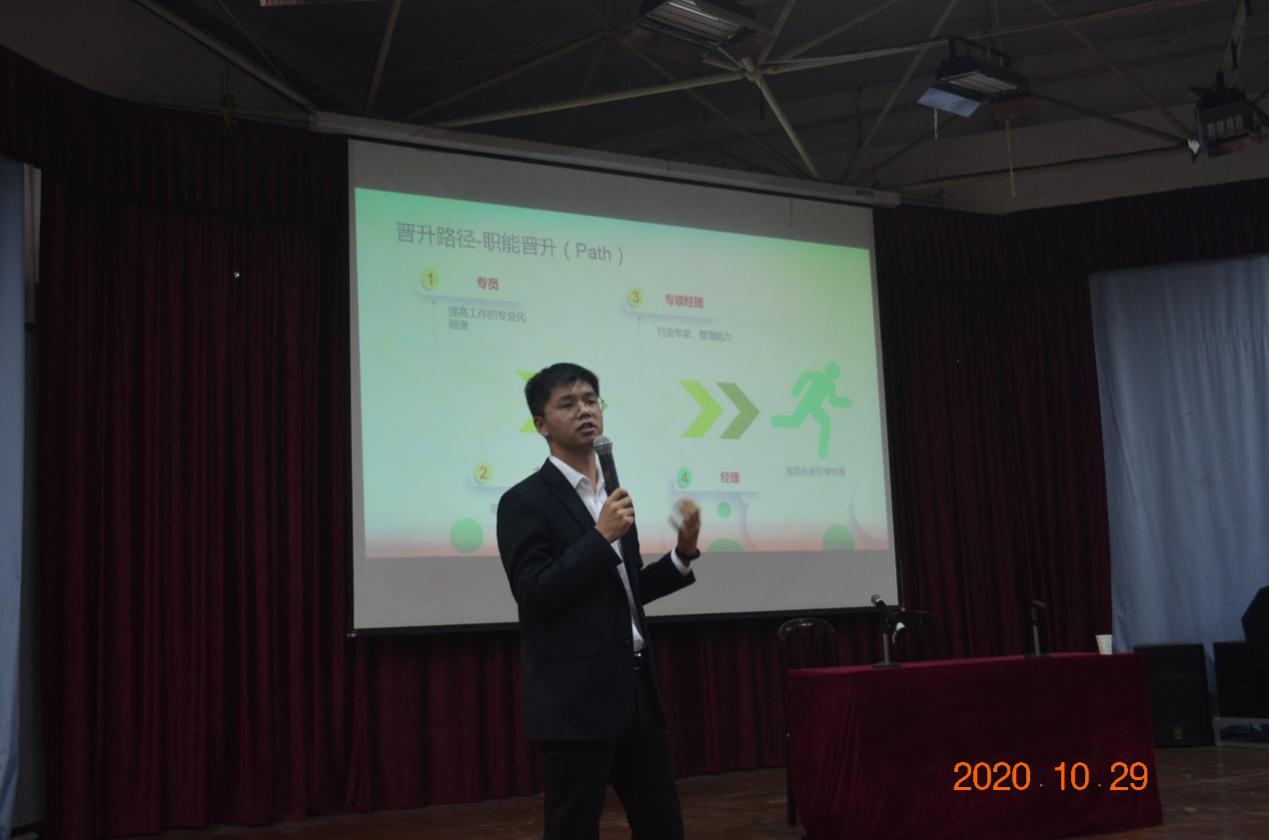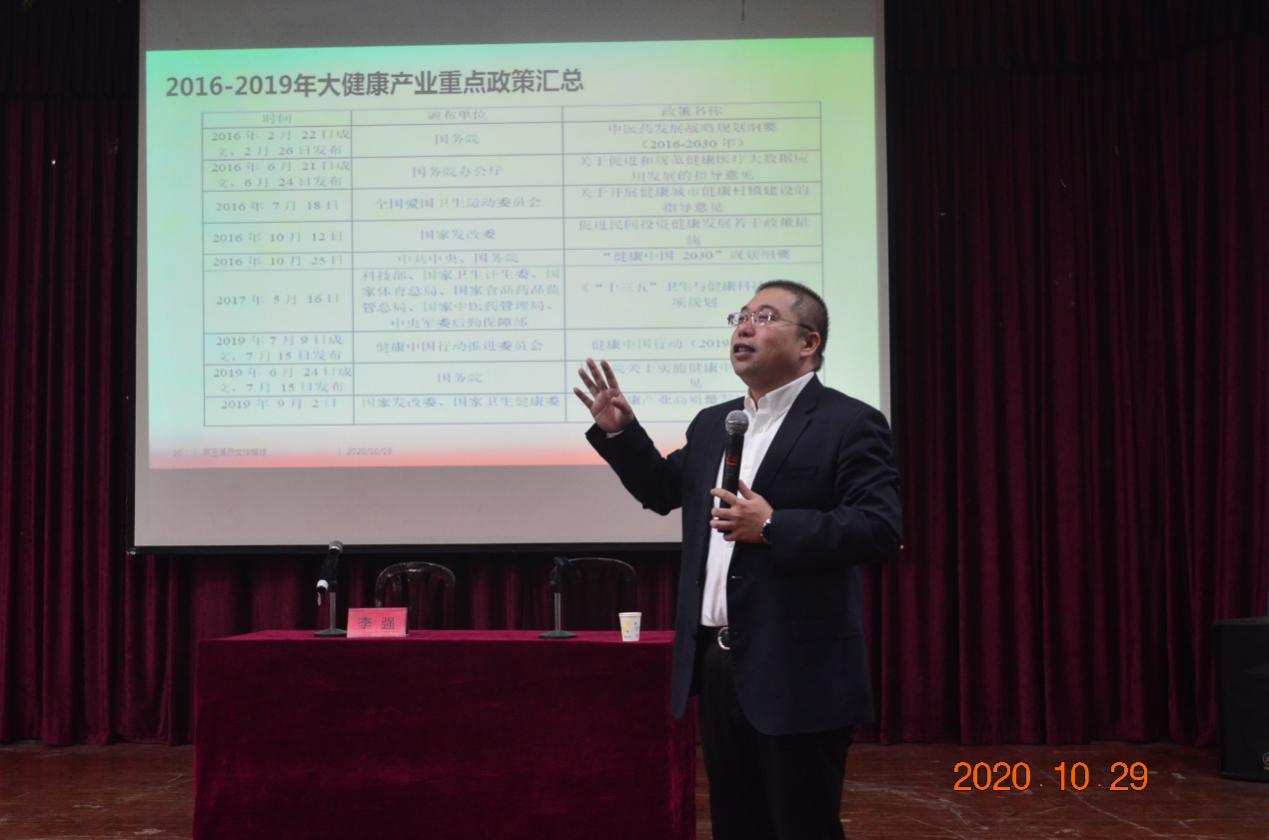 会谈结束后,李强来到学术报告厅为2020级药学专业新生做了题目为《药学人才队伍建设的发展与实践》的专业教育报告会。围绕药学专业人才的重要性、药学专业人才的能力要求和药学专业人才的发展前景等三个方面全面深入地介绍了药学专业学生的职业前景规划以及药品行业的发展现状,帮助同学们尽快对所学专业和行业有所了解。讲座结束后,漱玉平民大药房人事经理闫继德针对即将组建的“漱玉店长班”,为2019级同学进行了介绍和动员。