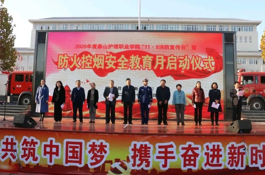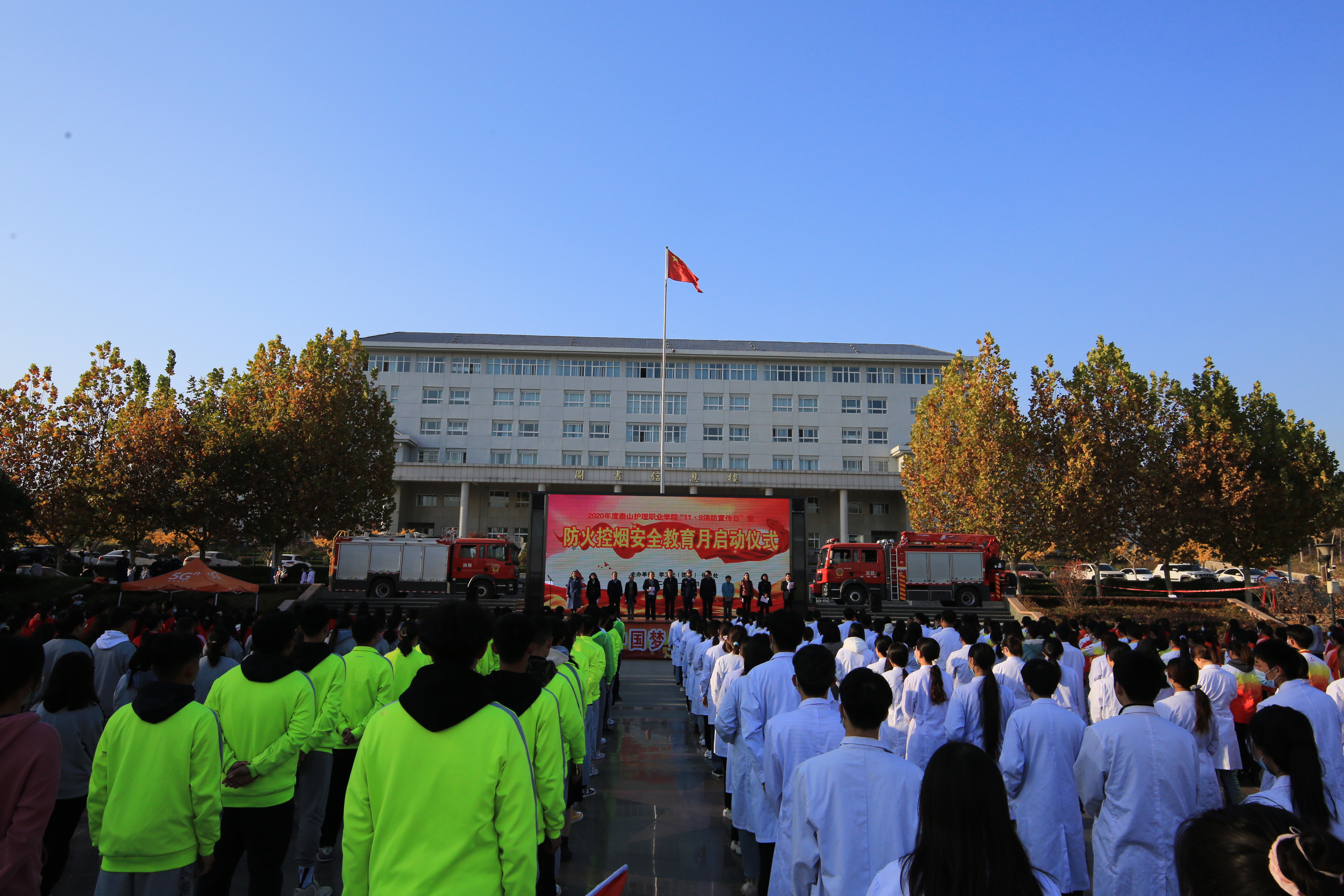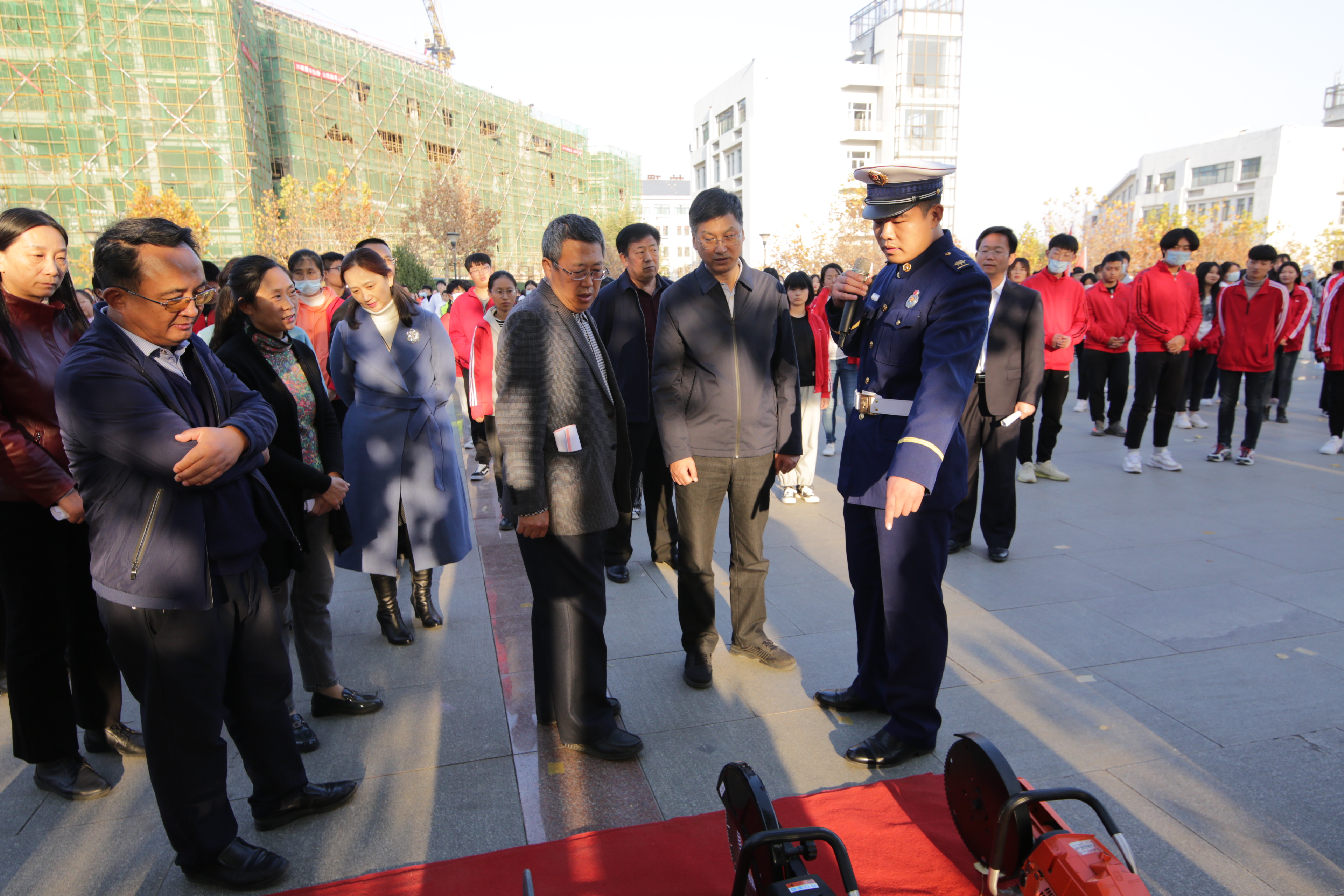 11月9日,新葡萄8883官网AMG举办 “119”消防安全月系列活动启动仪式,学院党委副书记、院长辛海明,岱岳区消防救援大队大队长沈广安,党员委员、副院长王安民,党委委员、办公室主任王建伦,学工处、保卫处、系部主要负责人以及学生代表500余人参加启动仪式。仪式由保卫处处长李新主持。