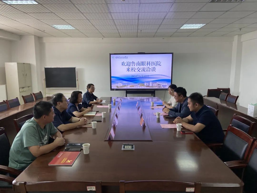 6月12日,山东省鲁南眼科医院副院长高锋一行三人来新葡萄交流洽谈,共同探讨学生实习就业等相关事宜。学院副院长李红伟,医学技术系党总支书记钱超、教学管理科副科长王利及相关专业带头人出席会议。