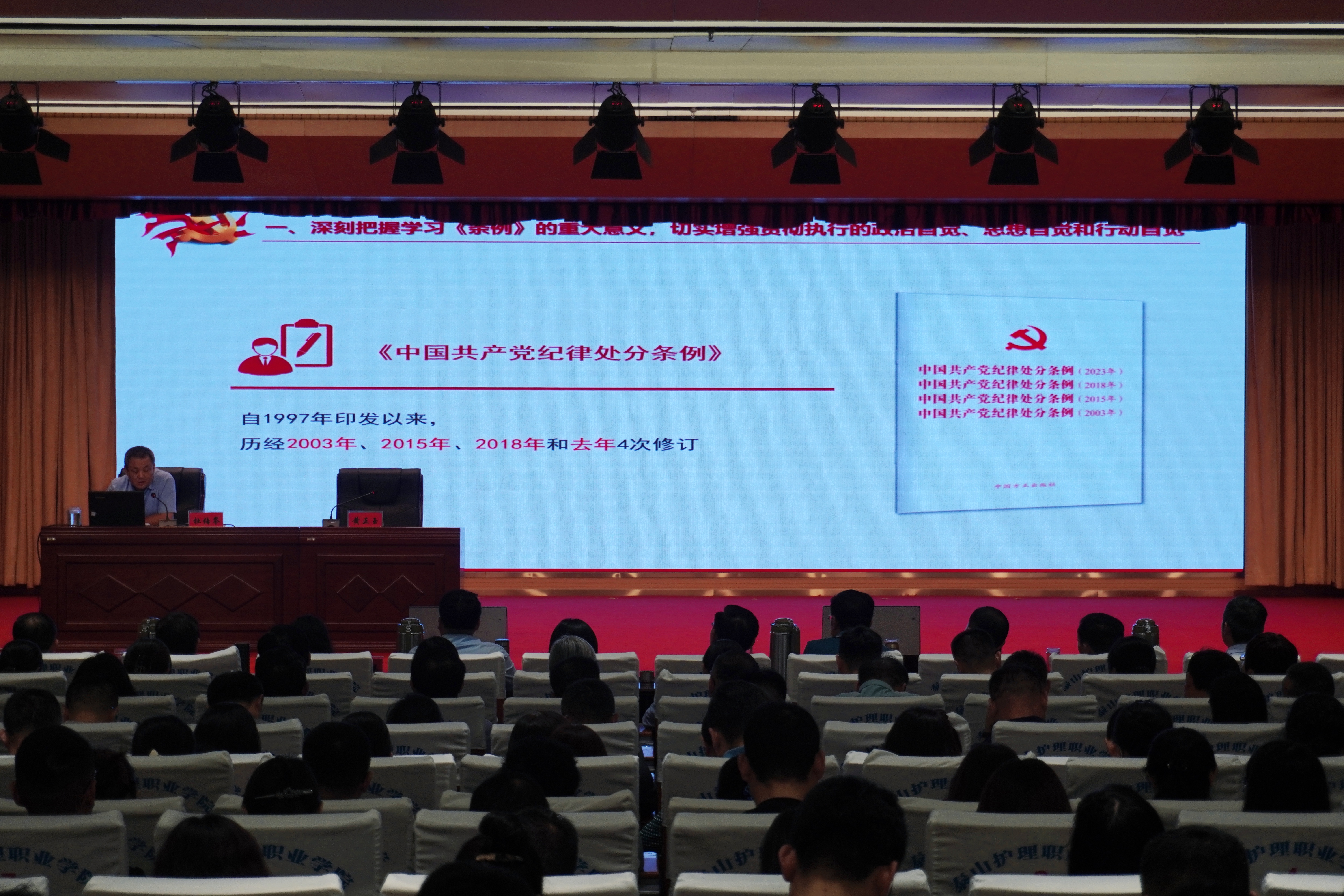 5月22日,学院举行党纪教育辅导报告会。泰安市纪委监委第四监督检查室杜伯岑主任到院作专题辅导报告,党委书记黄正玉主持会议,学院领导班子成员、副科级及以上领导干部、全体党员参加会议。