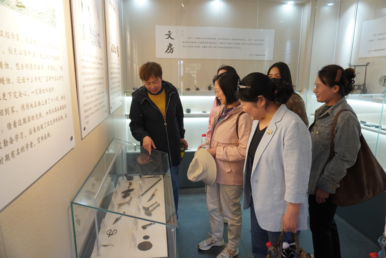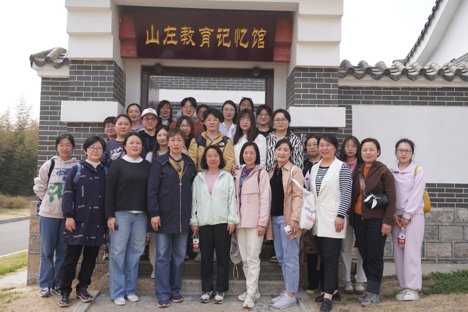踏入景区,大家穿过郁金香花区,来到山左教育记忆馆,内设的四个展厅详细展示了齐鲁大地从旧石器时代至今的发展历程。伴随着讲解员的介绍,大家了解了山东教育发展的情况,学习了“高考”的悠久历史,想象着考生们在号舍里度过九天的情景。展厅里的历代文房用品、碑刻匾额、课本资料等珍贵文物,生动地勾勒出了山东教育的历史脉络,引发了大家对教育传承的深刻思考,坚定了她们教书育人的崇高信念。