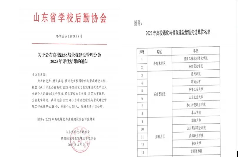 日前,2023年山东省高校绿化与景观建设评优结果公布,新葡萄8883官网AMG被评为2023年高校绿化与景观建设先进单位。
