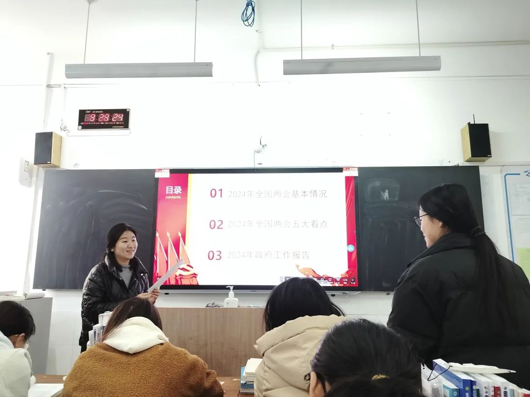 全体思政教师聚焦课堂教学主阵地,通过案例分析、小组讨论等形式,解析两会新鲜出炉的翔实数据、生动故事、热点话题,调动学生学习兴趣,引导学生深刻领会、准确把握两会精神实质。