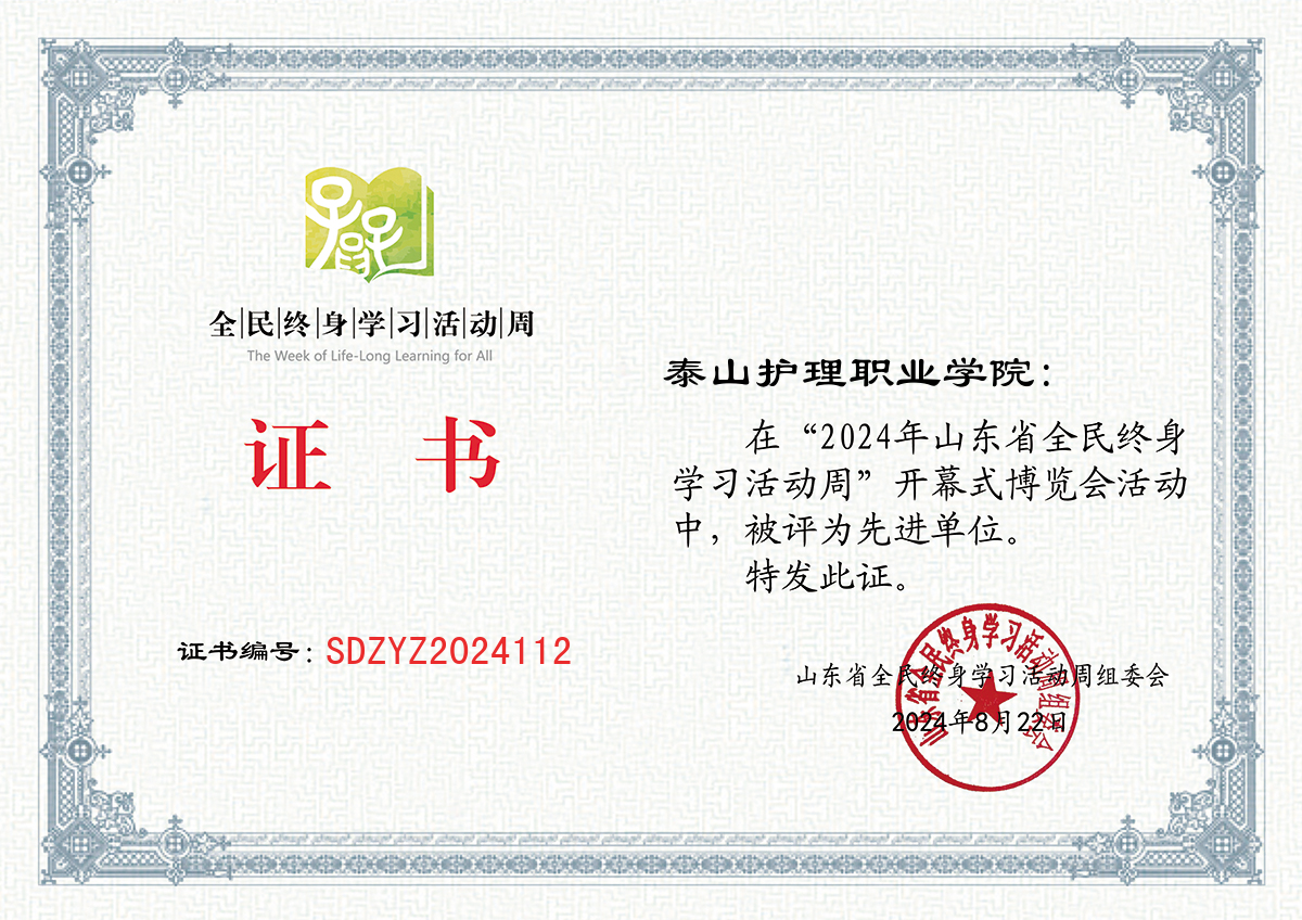 近日,学院在“2024年山东省全民终身学习活动周”开幕式博览会活动中被评为先进单位。