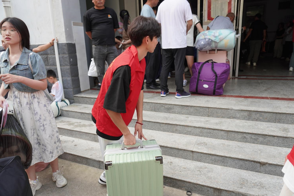 学院大巴车在高铁站、火车站、汽车站等候 一趟趟往返 将新生和家长平安送达学校 志愿者们做好引导 新生大学生活就此开启