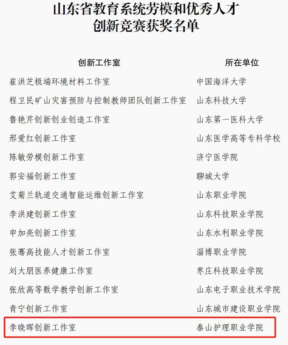 近日,山东省教育工会委员会公布了山东省教育系统劳模和优秀人才创新竞赛结果名单,学院“李晓晖创新工作室”荣获山东省教育系统劳模和优秀人才创新工作室称号。