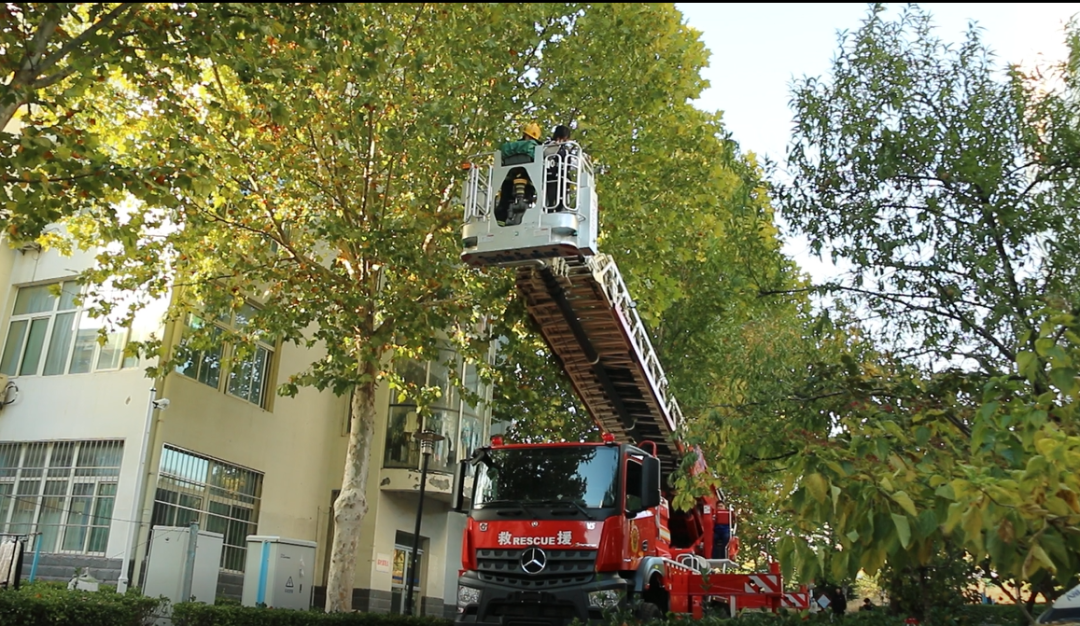 11月8日15时,伴随着急促的消防警报响起,演练正式开始,演练模拟3号宿舍楼3楼西侧一房间起火,随即消防控制室、值班宿管员逐级上报,并启动应急预案;校园微型消防站、值班老师立即扑救初期火灾、组织该宿舍楼学生紧急疏散;1楼男生宿舍逃生门被火封堵,通过窗户跳窗逃生;疏散过程中一名学生因腿伤无法逃离火场、一名学生被困5楼晾衣台,消防队员借助担架、消防云梯实施救援。演练全过程实施现场同步直播,参加活动的领导、师生在LED广场屏幕前实时观看演练各个环节。据介绍,演练全流程影像材料将形成安全教育课电子教材,活动结束后各班级观摩学习,掌握面对消防突发状况时的应急处置流程,切实提高应急处置能力。