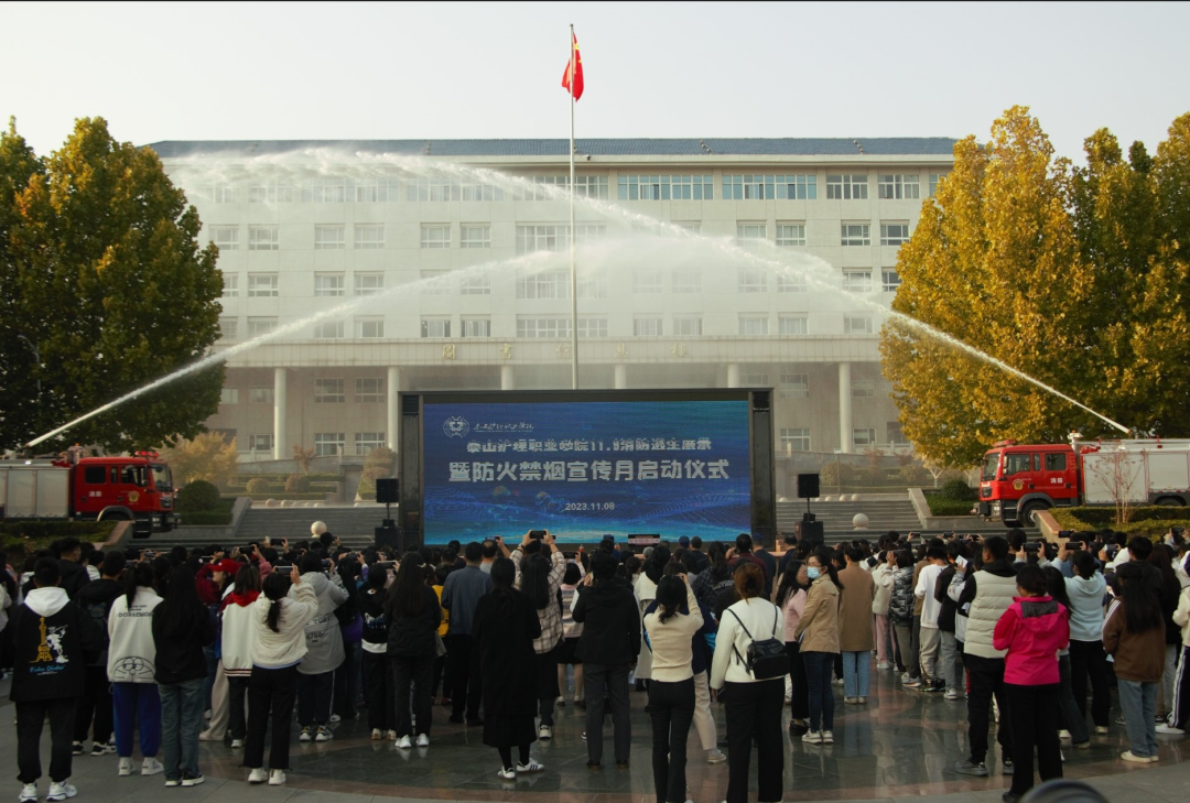 为进一步强化全院师生消防安全意识,提高广大师生面对消防突发状况时快速反应能力和应急处置能力,11月8日,在第三十二个消防宣传日来临之际,学院组织开展“119”消防安全宣传教育系列活动,泰安市消防救援支队副支队长马宏彬,学院副院长李红伟,以及师生代表共计六百余人参加活动。
