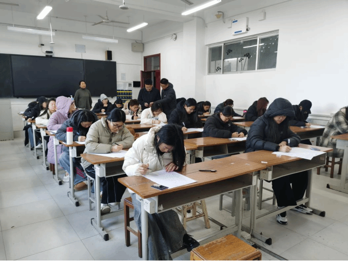 考试期间,监考老师尽职尽责,确保考试有序进行;学生认真答题,自觉遵守考试规则,展现了良好的精神面貌。
