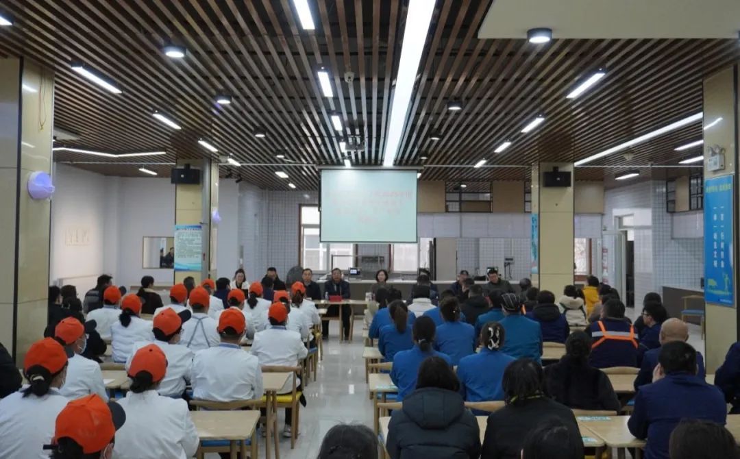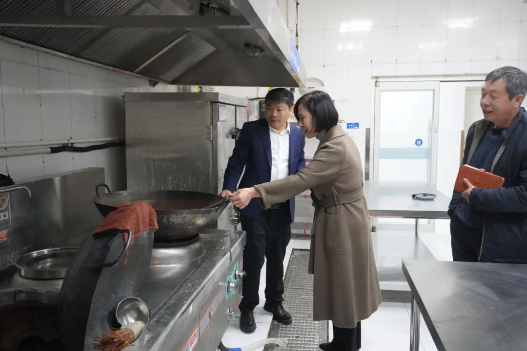 培训会召开前,荆丽艳一行深入食堂,对食堂的运行情况和安全状况进行了全面细致的检查,重点查看了食材采购与储存、厨房卫生、设备运行以及消防设施配备等关键环节,对发现的问题现场提出了整改要求,进一步推动了食堂管理的规范化进程。