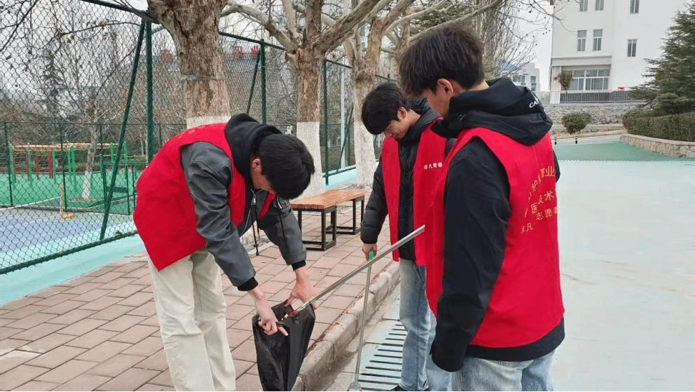 医学技术系的学生们课堂上讨论雷锋故事,课后加入“非凡青春”志愿者服务队,清理校园垃圾、维护环境整洁,彰显着学生们对文明校园的追求与担当。