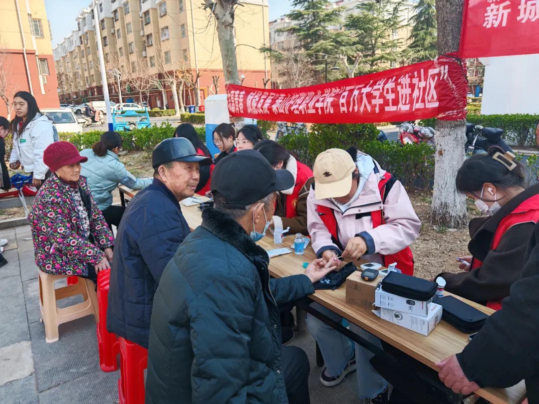 3月19日,学院团委联合共青团肥城市委、新城街道团工委,在伊家沟社区开展了红色合伙服务大篷车“百万大学生进社区”社会实践活动。学院师生发挥所长,将课堂知识转化为惠民服务,为社区居民带来一场别开生面的健康服务实践课。