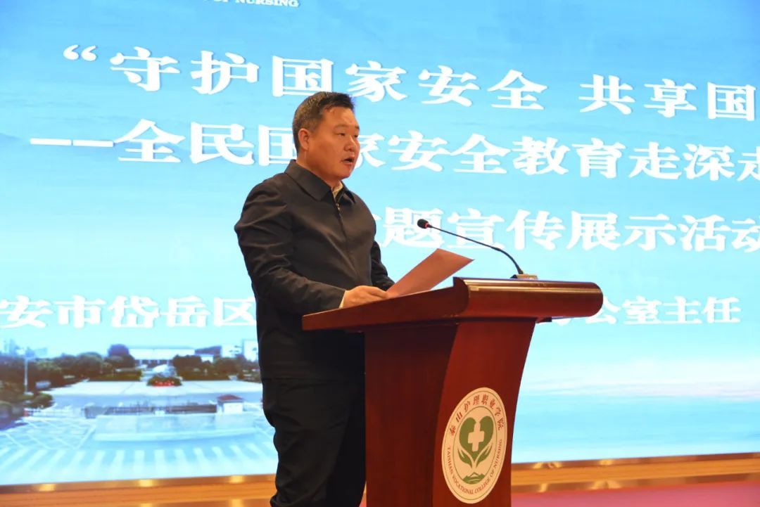 泰安市岱岳区委常委、区委办公室主任刘峰以及泰安市国家安全局有关负责同志分享了区域安全共建的经验,提醒师生“国家安全就在身边”,号召青年群体擦亮眼睛、提高警惕。