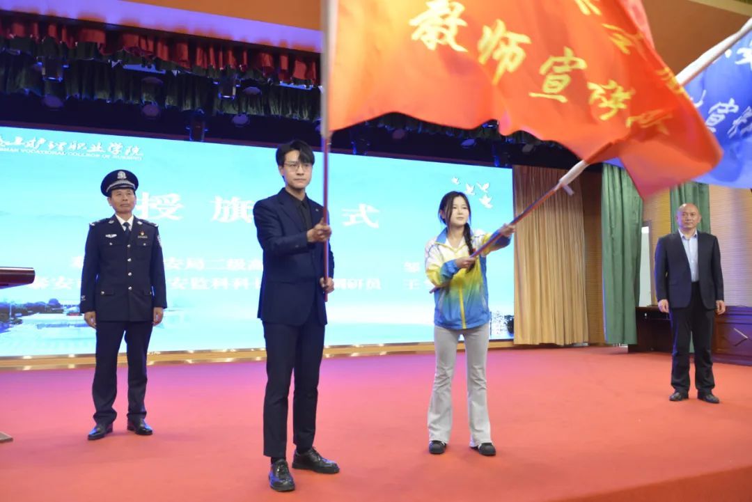 “我志愿献身医学,热爱祖国,忠于人民……为祖国医药卫生事业的发展和人类身心健康奋斗终身!”全体学生代表铿锵有力的宣言响彻会场。在庄严的授旗仪式中,市公安局和市教育局领导分别为学院“国家安全教育教师宣传队”和“国家安全教育学生宣传队”授旗,这支由百名师生组成的队伍将深入社区、校园开展常态化国家安全宣讲。