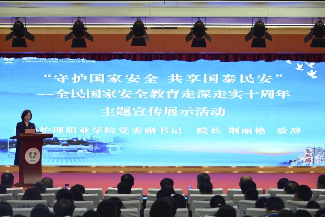 学院党委副书记、院长荆丽艳致辞。她指出,国家安全与每个人的生活紧密相连,作为培养卫生健康人才的高地,守护人民生命安全就是守护国家安全的第一道防线。广大青年学子要做到以学促行、以责促守、以创促新,在学好专业技能的同时厚植家国情怀,努力成为国家安全的守护者。