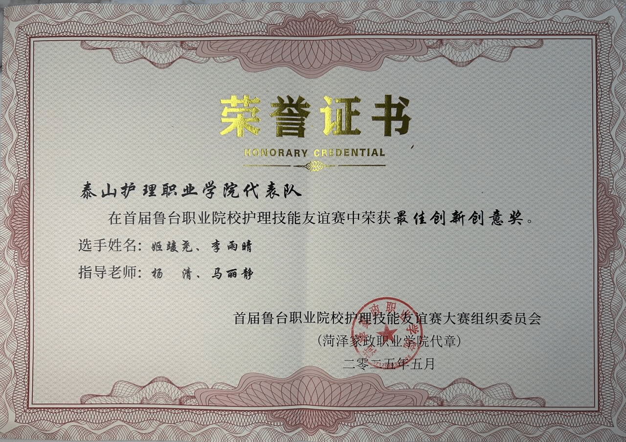 5月10日至11日,首届鲁台职业院校护理技能友谊赛在菏泽家政职业学院举行。由护理系教师杨清、马丽静和学生姬竣尧、李雨晴组成的代表队取得了“团体最佳创新创意奖”的好成绩。