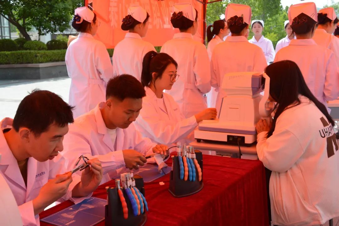在当天的技能展演现场,各教学单位以成果为核心,构建起立体化技能展示矩阵。婴幼儿护理抚触、科学膳食调配、推拿正骨手法教学、急救技能动态演示、验光配镜全流程模拟、视觉功能康复训练,全方位呈现出职业教育的实践魅力与专业价值。