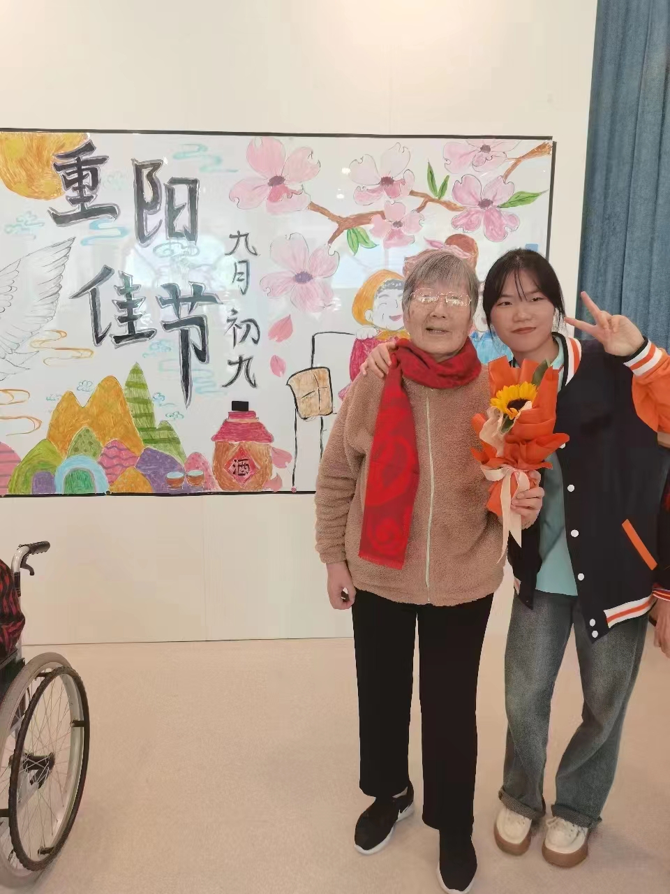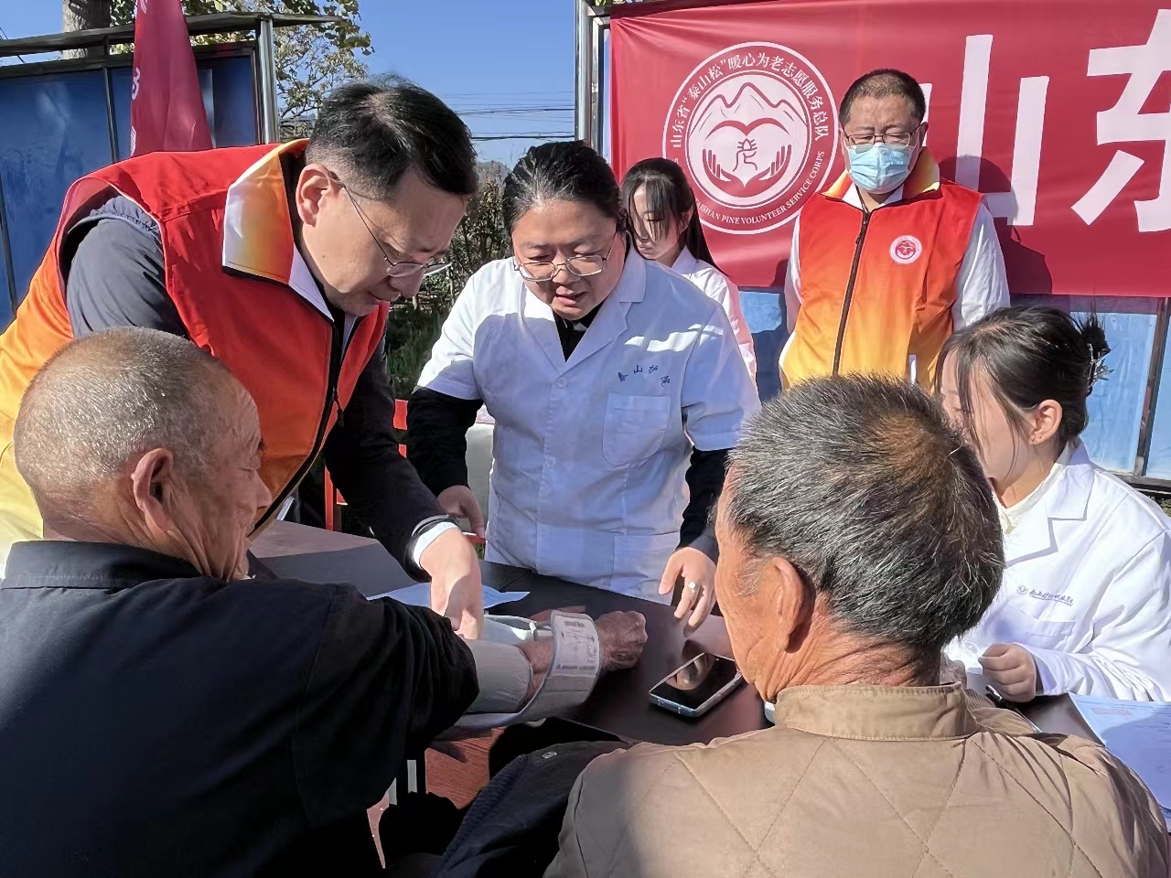 10月21日上午,重阳节前夕,新葡萄8883官网AMG积极参与由山东省“泰山松”暖心为老志愿服务总队开展的志愿服务活动,助力青春为老,情暖夕阳,再获央视报道。活动现场,泰安市岱岳区下港镇大林村小广场格外热闹,四里八乡的老乡们纷纷来此“赶大集”,在“诊疗摊位”“照护摊位”“辅具摊位”了解服务类型。健康与管理系贾茜老师现场为老人测量血压,评估老年人身体状况,让老人切实体验了送到家门口的医疗服务。新葡萄8883官网AMG志愿者展现了高度的社会责任感和爱心,弘扬尊老爱幼的传统美德,获得了村民的一致认可。