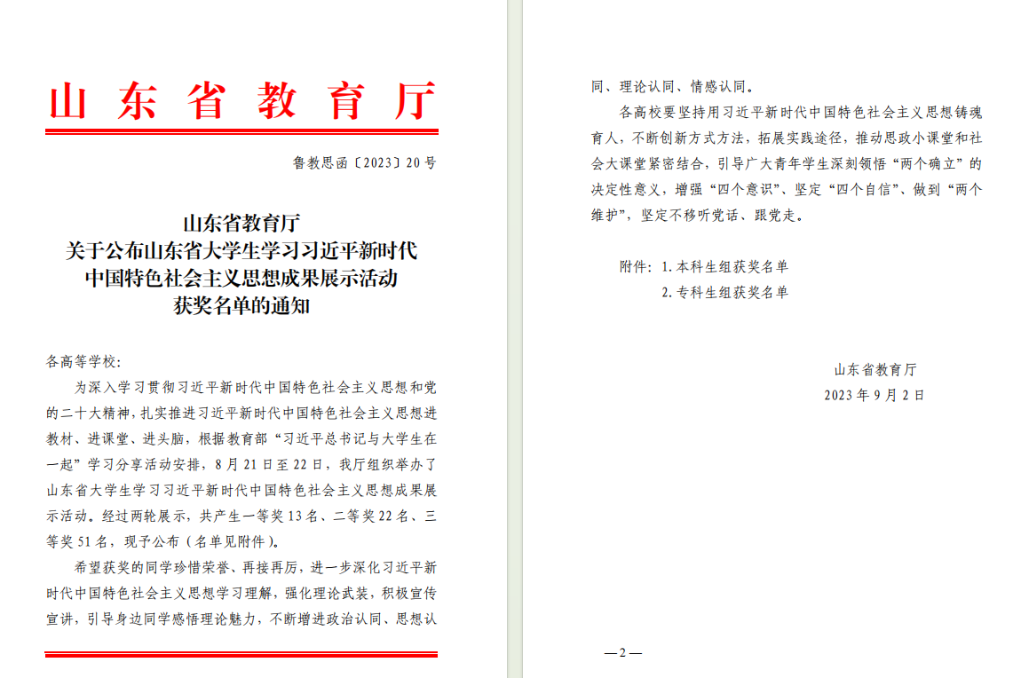 8月21日至22日,山东省教育厅组织举办了山东省大学生学习习近平新时代中国特色社会主义思想成果展示活动,全省高校近140名全日制在校本专科学生参赛,40所高职院校获奖,新葡萄学子王润豪荣获三等奖。