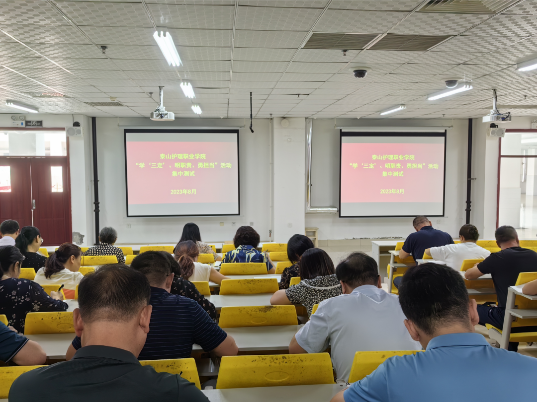 为深化“学‘三定’、明职责、勇担当”活动成果,提高学院干部恪尽职守、担当作为、干事创业的行动自觉,8月30日,新葡萄8883官网AMG在实验中心S103组织对科级及以上干部进行“学‘三定’、明职责、勇担当”活动测试。