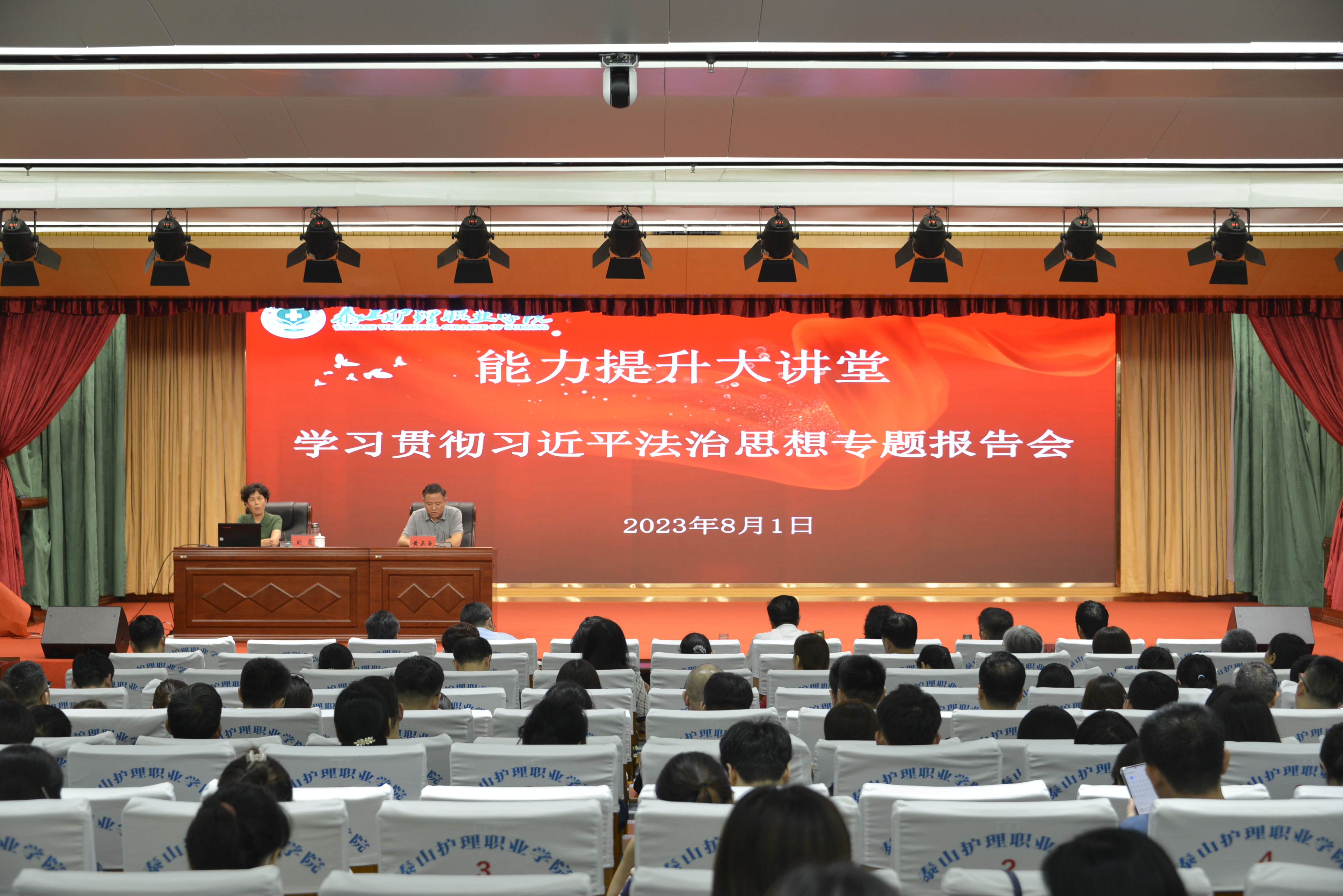党委书记黄正玉主持报告会。他要求,统一思想、提高认识。要提高政治站位,把学习贯彻习近平法治思想作为必修课,聚焦学思用贯通、知信行统一,持续发力,以学铸魂、以学增智、以学正风、以学促干,切实增强学习贯彻习近平法治思想的政治自觉、思想自觉和行动自觉。聚焦中心,依法治校。要紧紧围绕学院总体发展战略目标,围绕创建“双高”院校,把习近平法治思想,贯穿到办学治校、人才培养、教育教学、师资队伍建设等各个方面,努力在深化、内化、转化上做文章、下功夫,真正以法治建设的新成效,全面推进依法治校各项工作向纵深开展。加强宣传,营造氛围。要强化问题导向、实践导向、需求导向,深入开展普法宣传教育,加强课堂教育教学,创新法治宣传形式,营造依法治校、依法治教、依法办学的浓厚氛围。要推进法治教育进校园、进课堂,教育引导广大师生端正态度安心学、联系实际深入学,增强法治学习的积极性、主动性,在全院形成尊法、学法、守法、用法的良好环境。