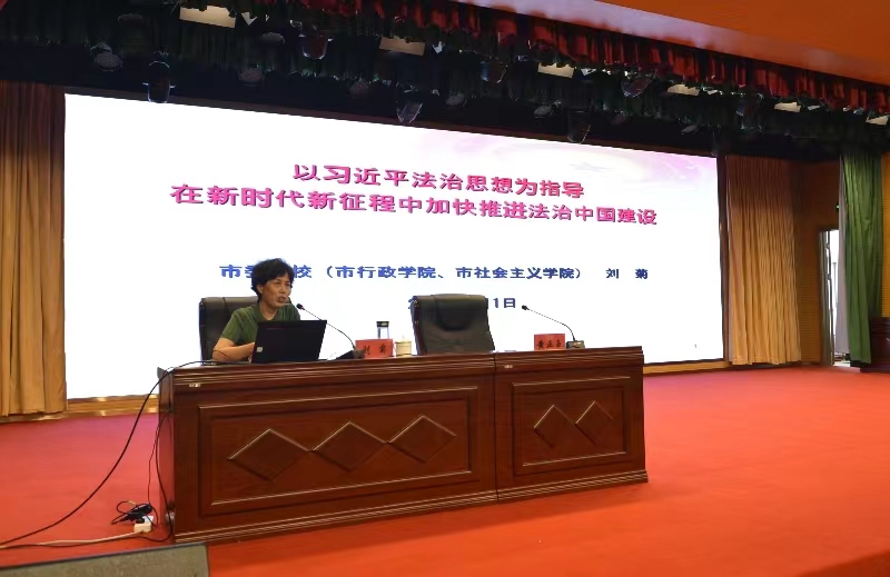 刘菊教授作了题为《以习近平法治思想为指导 在新时代新征程中推进法治中国建设》的专题报告,围绕深入学习把握习近平法治思想的精髓要义,新时代新征程法治中国新内涵及基本状况,以习近平法治思想为引领、加快推进法治中国建设三部分内容,详细讲解了全面系统地学习贯彻习近平法治思想的重点,讲述了如何以习近平法治思想为引领,推进依法治校、依法治教,为法治泰安、法治山东、法治中国建设做贡献。报告内容丰富、脉络清晰、站位高远、见解深刻,使参会人员受益非浅、感受颇深,既帮助大家增长了知识,也启发了新的工作思路。
