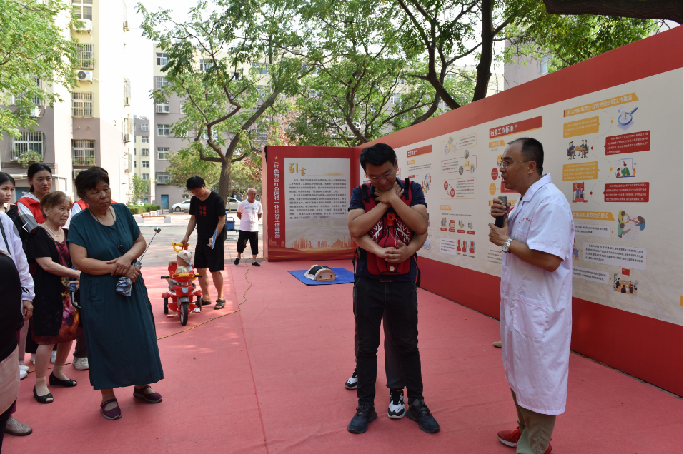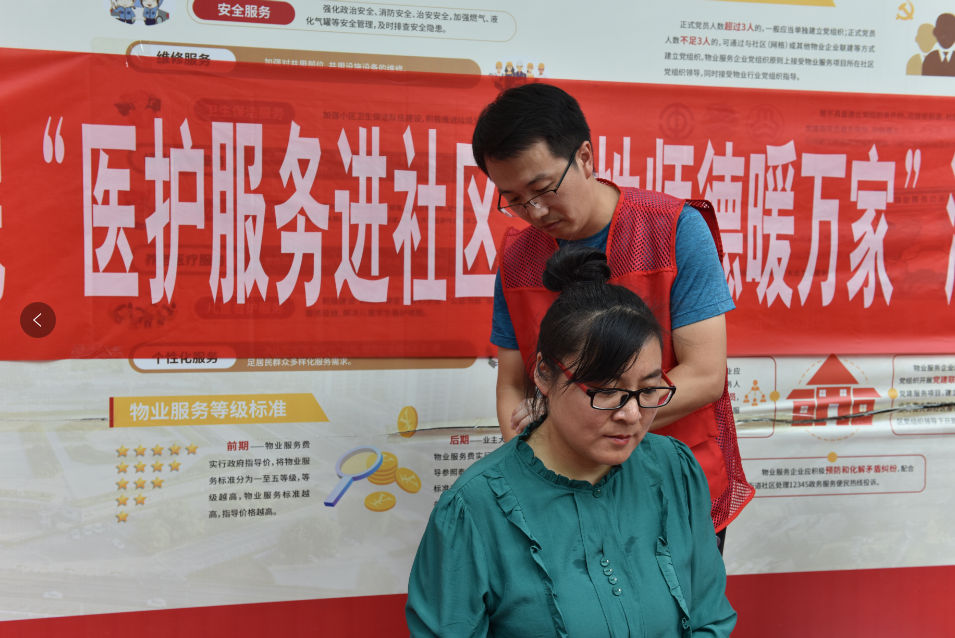 活动现场,社区居民广泛咨询,认真倾听学院教师给出的健康指导意见,并学习一些常用的心肺复苏、海姆立克急救法等急救知识。学院护理系、康复系和健康与管理系部分党员、教师和学生现场为居民发放夏季防暑保健知识宣传单,讲解健康知识;进行急救法展示,以及婴幼儿抚触、沐浴、保育等知识示范培训;同时组织开展量血压、脉诊、针灸、推拿等诊疗活动。细致的讲解、专业的指导,为居民提供家门口的优质服务,赢得社区居民一致好评。