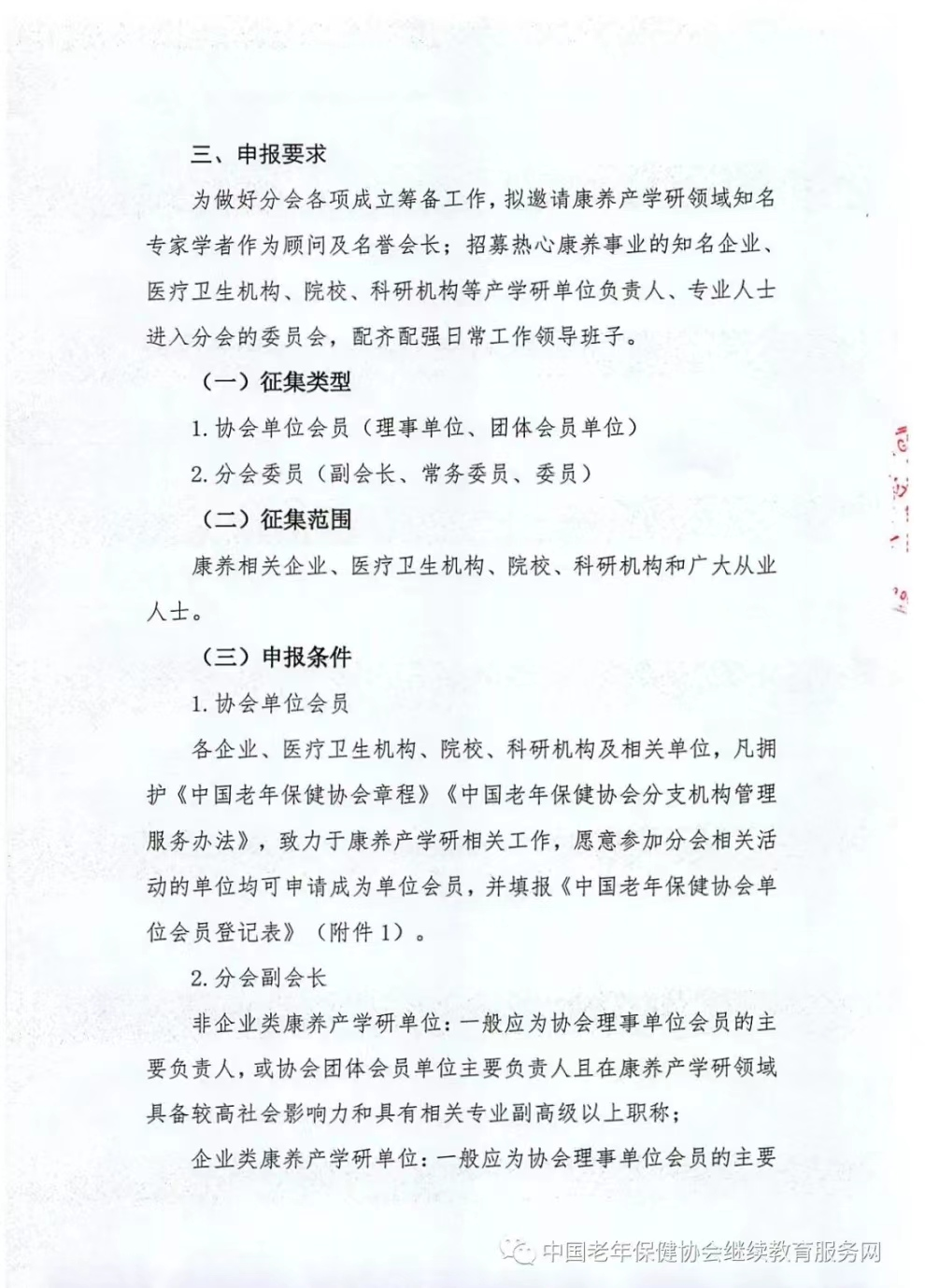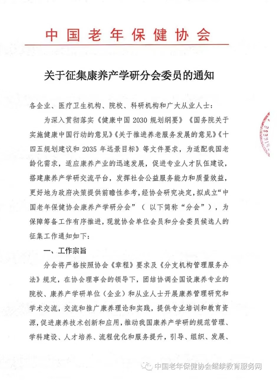 经中国老年保健协会批准,现拟成立“中国老年保健协会康养产学研分会”,该分会宗旨为协调全国设康养专业的院校、康养产学研单位(企业)和从业人士开展康养管理研究和学术交流,交流和推广康养理论和实践,提供专业培训和教育资源,促进康养技术创新和应用,推动我国康养产学研的规范管理,为企业储备专业技术人才。欢迎对康养产业有浓厚兴趣,具备相关专业背景和经验的专家、学者和从业人员积极参与。诚邀进群交流!