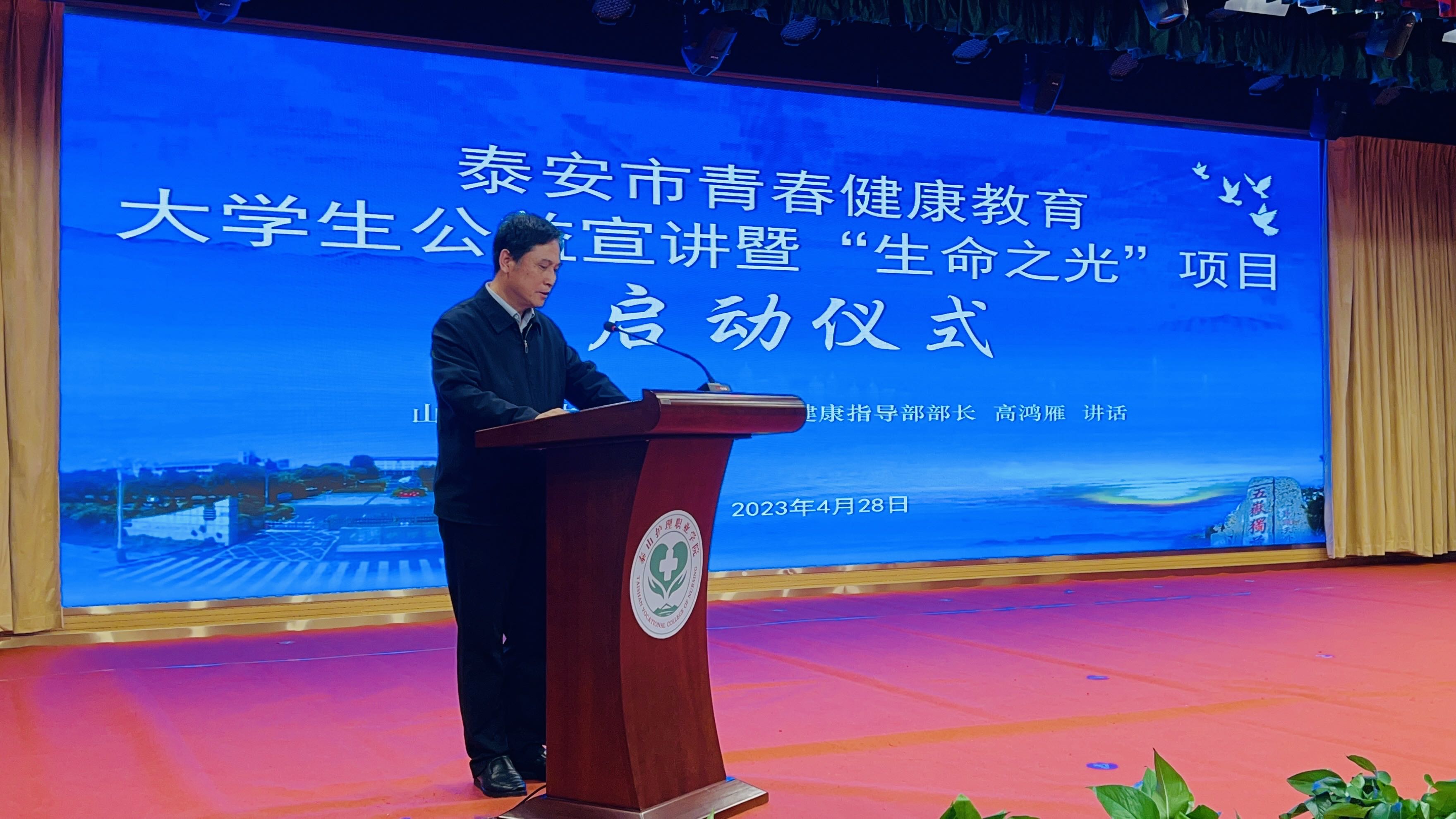 关注青春健康,呵护美好心灵。4月28日,由市卫健委、市计生协会、新葡萄8883官网AMG联合举办的“泰安市青春健康教育大学生公益宣讲暨生命之光项目”正式启动,这是政府主导、专业院校协同开展青春健康教育的一次有益尝试和具体行动,目的是以此为牵引,带动全社会形成关心、关爱青年学生身心健康的良好氛围。