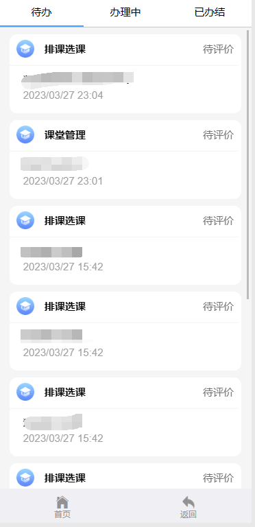 5.查看、评价。在平台首页点击【待办】、【办理中】或【已办结】栏目可以查看对应状态的数据。