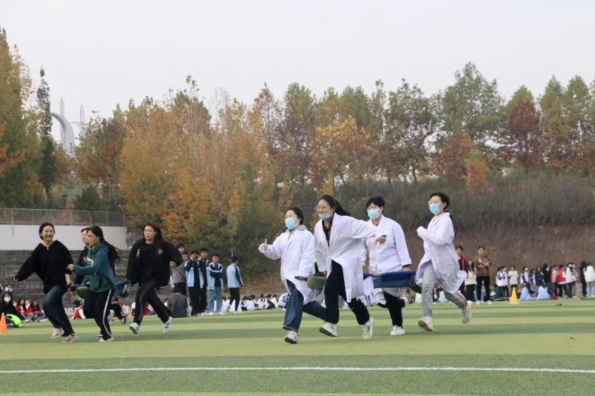 在紧张激烈的比赛中,参赛选手你追我赶、顽强拼搏,展现奋勇争先的精神面貌,尽情享受着体育的魅力。学生抬担架狂奔,争分夺秒,跟生命赛跑,合作默契,设立该项目是为了锻炼医学生救死扶伤的速度。在拔河项目时,每位选手精神饱满、斗志昂扬,随着裁判哨声响起,队员们紧握长绳,双脚蹬地,用汗水阐释了团队的含义。伴随着阵阵欢呼声、加油声,为期一天的健身项目运动会圆满落下帷幕。