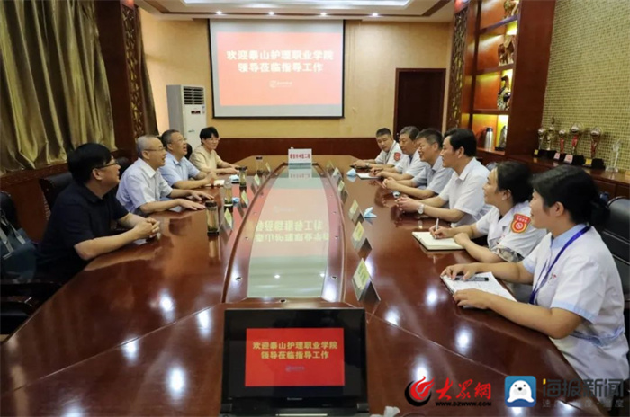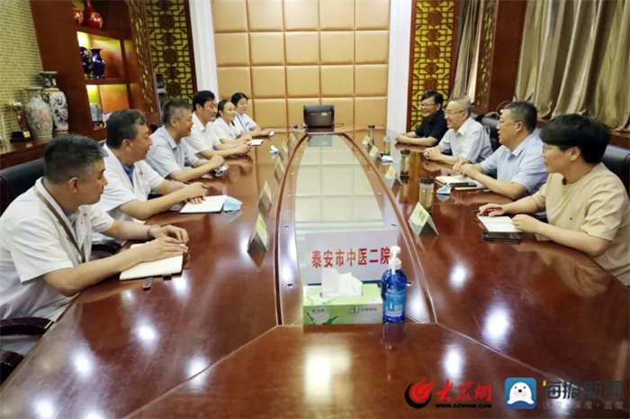 8月16日上午,新葡萄8883官网AMG党委书记孙兰俊,党委委员、副院长王安民,招生就业指导办公室主任张向民,实习管理老师刘娜娜等一行4人到泰安市中医二院走访调研。泰山区卫健局党组书记、局长杨卫兵陪同,泰安市中医二院党委书记、院长王兴涌,副院长袁超及有关职能科室主任参加座谈。