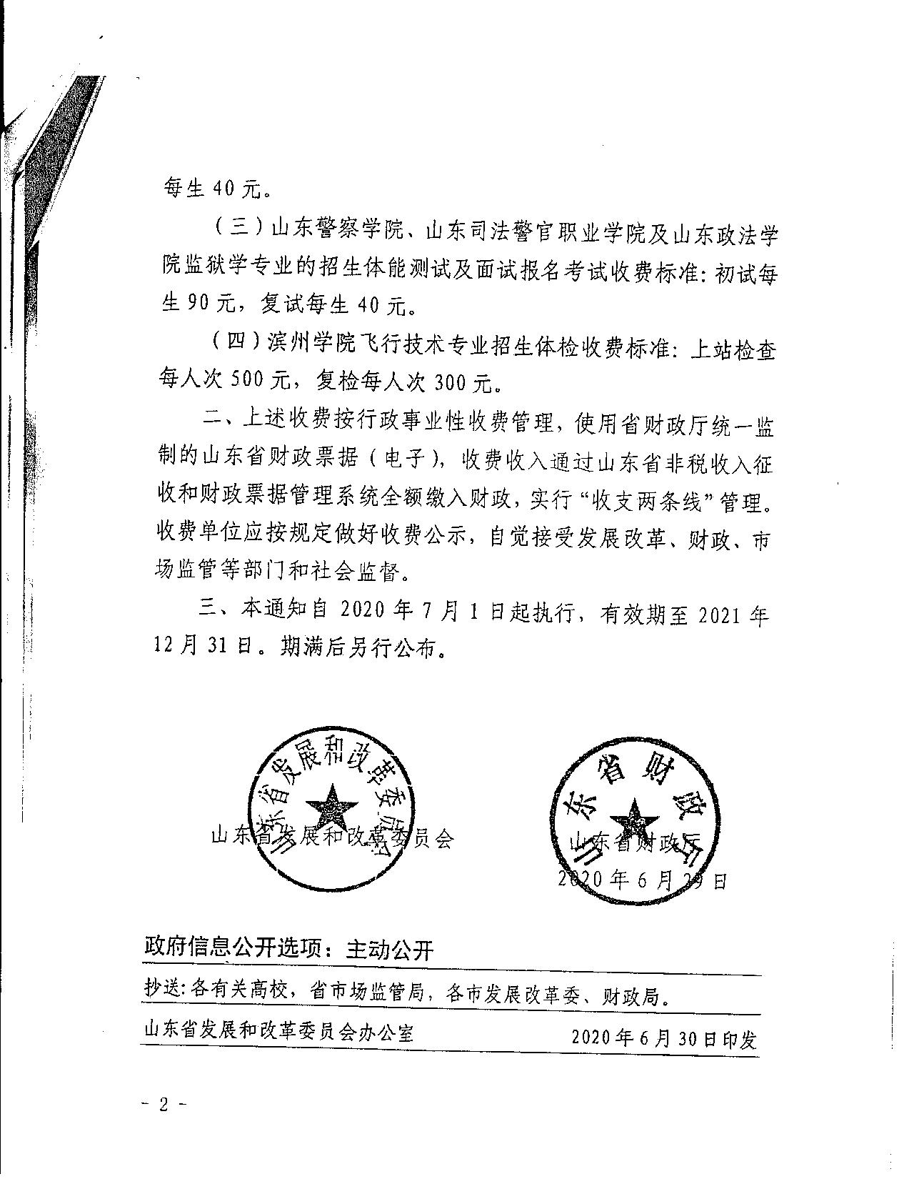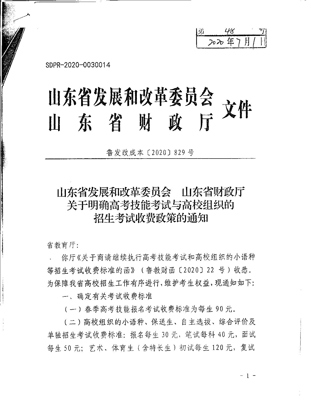山东省发展和改革委员会 山东省财政厅关于明确高考技能考试与高校组织的招生考试收费政策的通知