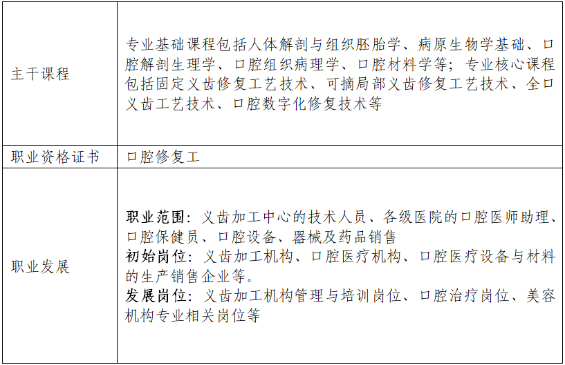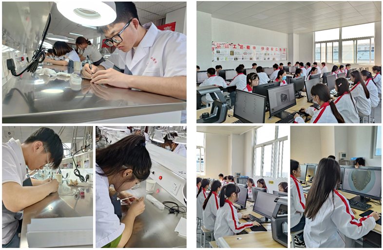 口腔医学技术是一门实践性较强的专业,主要培养义齿加工公司、口腔修复科、正畸科、口腔材料或器械公司等行业企业的高素质技术技能人才。随着义齿加工、种植牙、隐形义齿等行业的发展,新材料、新技术、新设备不断涌现,尤其是口腔CAD/CAM 技术、3D打印技术的飞速发展,义齿加工业进入数字化发展的快车道,正由传统制造业逐步朝着智能制造方向转型升级,产生了大量新兴职业岗位。口腔医学技术专业拥有临床专家和校内导师组成的“双师型”教师团队,校内教师12人,医院兼职教师5人,其中副教授2人。现在校学生171人。新葡萄主要培养具有口腔医学技术基础理论知识,熟练各种常用修复体设计和制作,从事口腔修复工艺设计和矫形制作的高素质技术技能型人才。