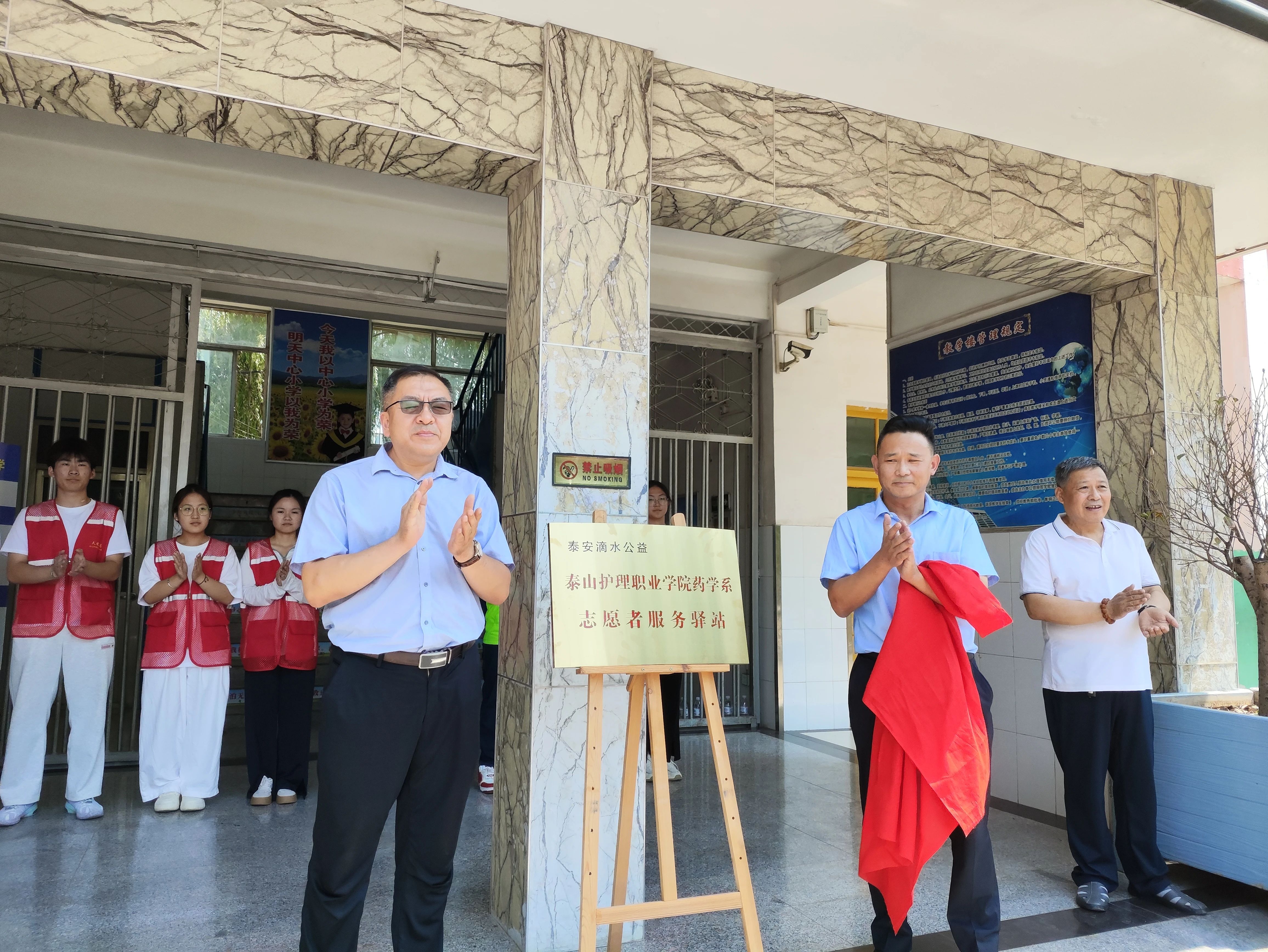 6月19日,学院药学系志愿者服务驿站揭牌仪式在东平县斑鸠店镇中心小学举行。斑鸠店镇、泰安市滴水公益协会、药学系及中心小学有关负责人及部分志愿者出席活动。