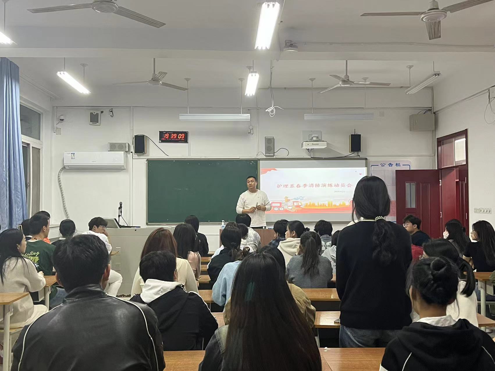 为了保证此次消防演练能够安全、有效的进行,4月11日晚,系部召开了护理系春季消防演练动员大会,传达了详细的疏散演练方案,对各班级的疏散路线、各岗位人员分工及注意事项等都做了明确的规定与要求。